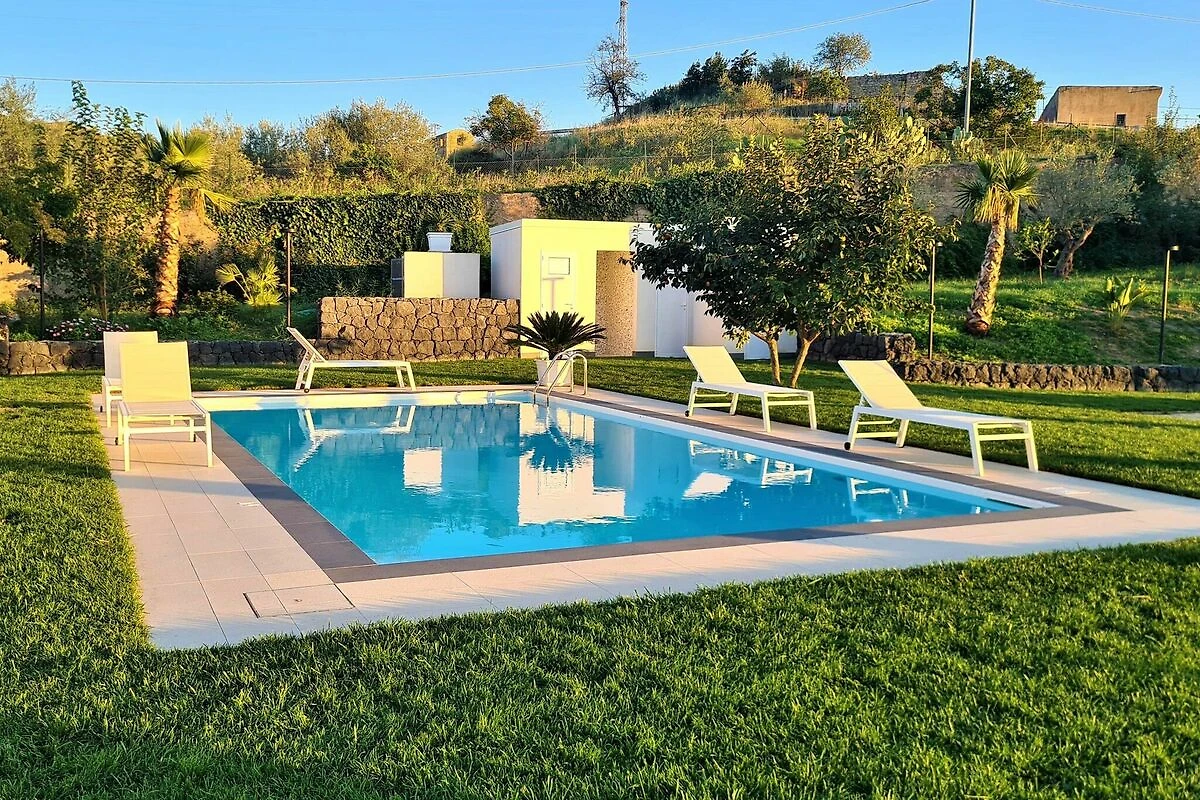 Omgeven door weelderig groen en gelegen in het hart van Sicilië, biedt dit stijlvolle vakantiehuis in Leonforte de perfecte ontsnapping voor families en vrienden. Met een privézwembad met ligstoelen, een schaduwrijke veranda om buiten te eten en een grote omheinde tuin is ontspannen hier een fluitje van een cent. De ruimte is zorgvuldig ontworpen voor comfort het hele jaar door, met airconditioning, een modern interieur en speelvoorzieningen zoals een kinderstoel en gezelschapsspelletjes om de kleintjes te vermaken.