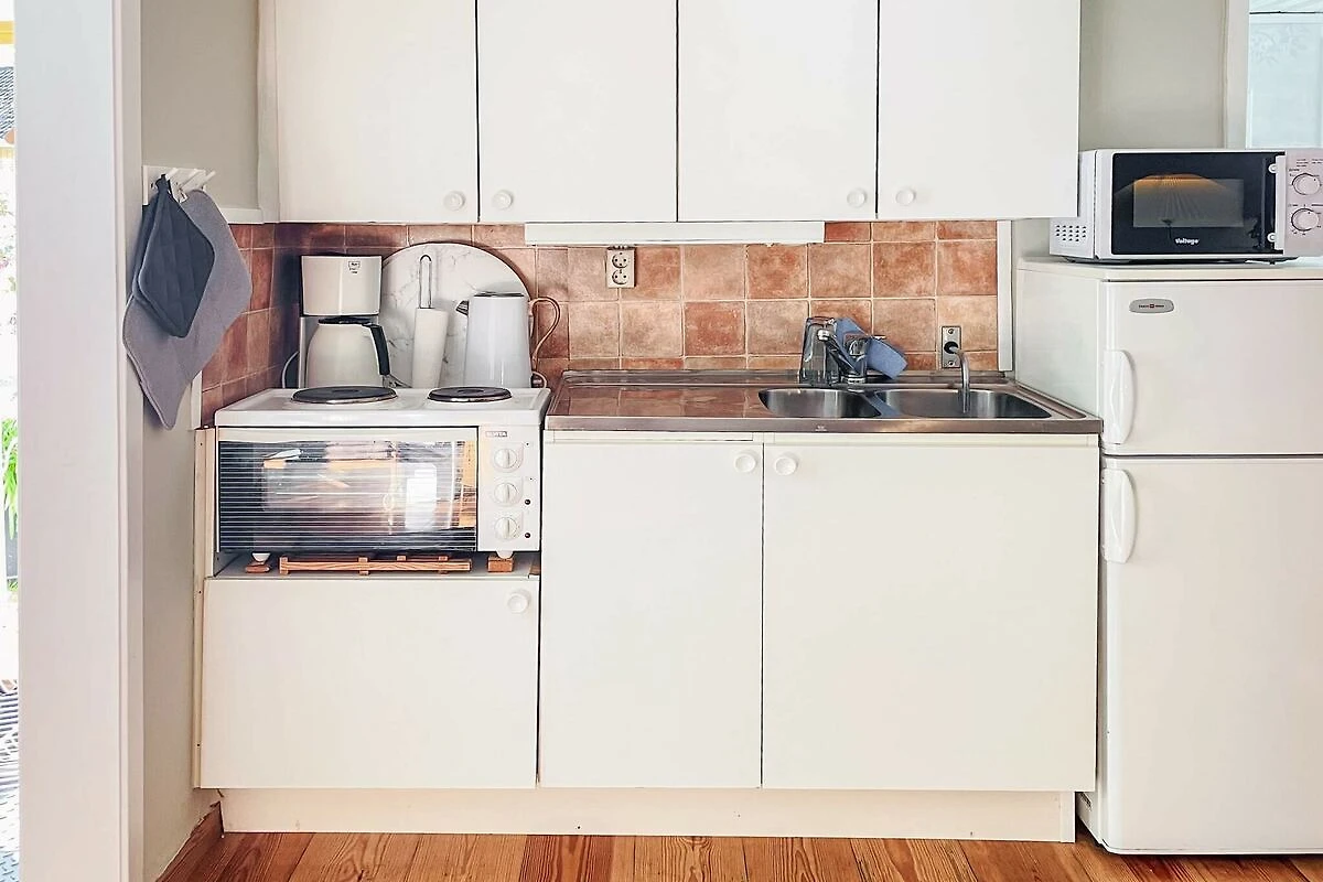In einer ruhigen Sackgasse, nur 100 m vom Meer entfernt, befindet sich dieses ansprechende, kleine Gästehaus. Es steht auf dem Privatgrundstück des Eigentümers, der gleich nebenan wohnt. Größeres Badeufer nur 400 m vom Häuschen bei Ekenäs Camping. Die perfekte Unterkunft für die Gruppe von Freunden, die kleine Familie oder das Paar, da die Schlafplätze aus einem Doppelschlafsofa und einem klappbaren Gästebett bestehen. Alle 3 Betten haben eine zusätzliche Obermatratze für guten Komfort. Sitzplatz mit Kiesbelag für Grillabende vor dem Eingang. Ebenso Stellplatz vorhanden. Praktische Kleiderschränke und Hutablage am Eingang. Das Häuschen hat eine helle Einrichtung und besteht aus einem offenen Küchen-/Wohnbereich mit Ess- und Sitzecke mit Schlafsofa. Es gibt einen Fernseher. Nebenan helles Badezimmer mit Dusche. In zentraler Lage, mit buchstäblich dem gesamten Schärengarten von Blekinge zu Ihren Füßen, haben Sie es von hier aus nicht weit zu schönen Ausflugszielen. Angelgewässer sowohl im Meer als auch im nahe gelegenen Mörrumsån. Die Bushaltestelle an der anderen Seite des Gartens bringt Sie bequem ins Zentrum von Ronneby oder in die nahe gelegenen Städte, die im Sommer viele verschiedene Veranstaltungen und Festivals bieten, wie z.B. Schwedenrock, das Baltic Sea Festival und das Schärenfestival von Karlskrona, um nur einige zu nennen. Ein Tagesausflug zur schönen Insel Karön, per Boot vom 500 m entfernten Hafen aus, lädt zu Naturerlebnissen, Baden und evtl. einem Restaurantbesuch ein. Nur wenige Gehminuten vom Haus entfernt liegt der Brunnsparken, in dem Sie herrlich spazieren gehen können, und mit dem Wasserpark des Hotels Ronnebybrunn nebenan ist für jeden etwas dabei. Reisen Sie mit einem Hund? Kontaktieren Sie Stugsommar nach der Buchung per E-Mail an: minstuga@stugsommar.se. Bitte geben Sie Ihre Buchungsnummer im Betreff an. Vielen Dank im Voraus!