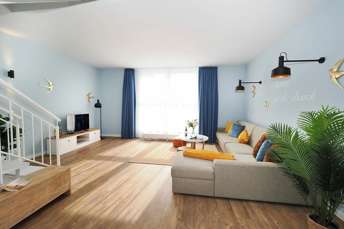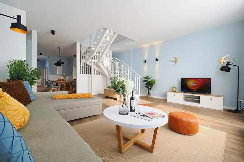 zeer mooie en noordse modern ingerichte vakantiewoning, terras gedeeld, 3 minuten naar het strand