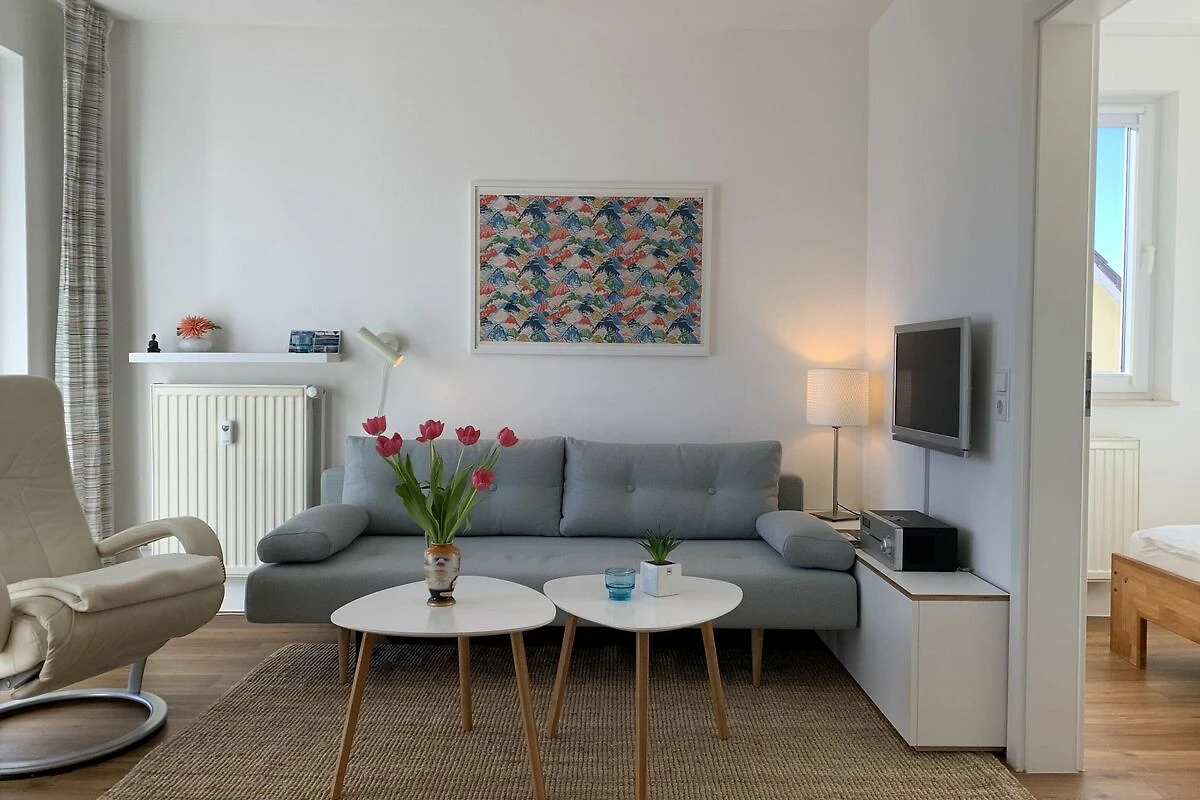 De vakantiewoning ligt zeer centraal. Het is slechts een paar stappen naar de Rewe en naar restaurants. De parkeerplaats is bij het huis en behoort tot de woning. De vakantiewoning zelf is licht en modern ingericht. In de keuken is alles aanwezig wat je nodig hebt. Op het grote balkon kun je heerlijk ontbijten bij zonnig weer en zie je zelfs een paar schepen op de zee.