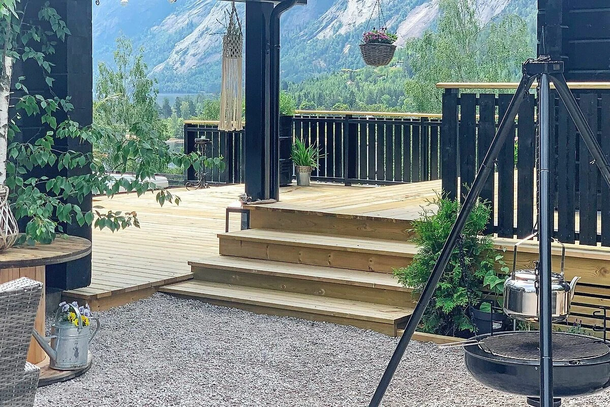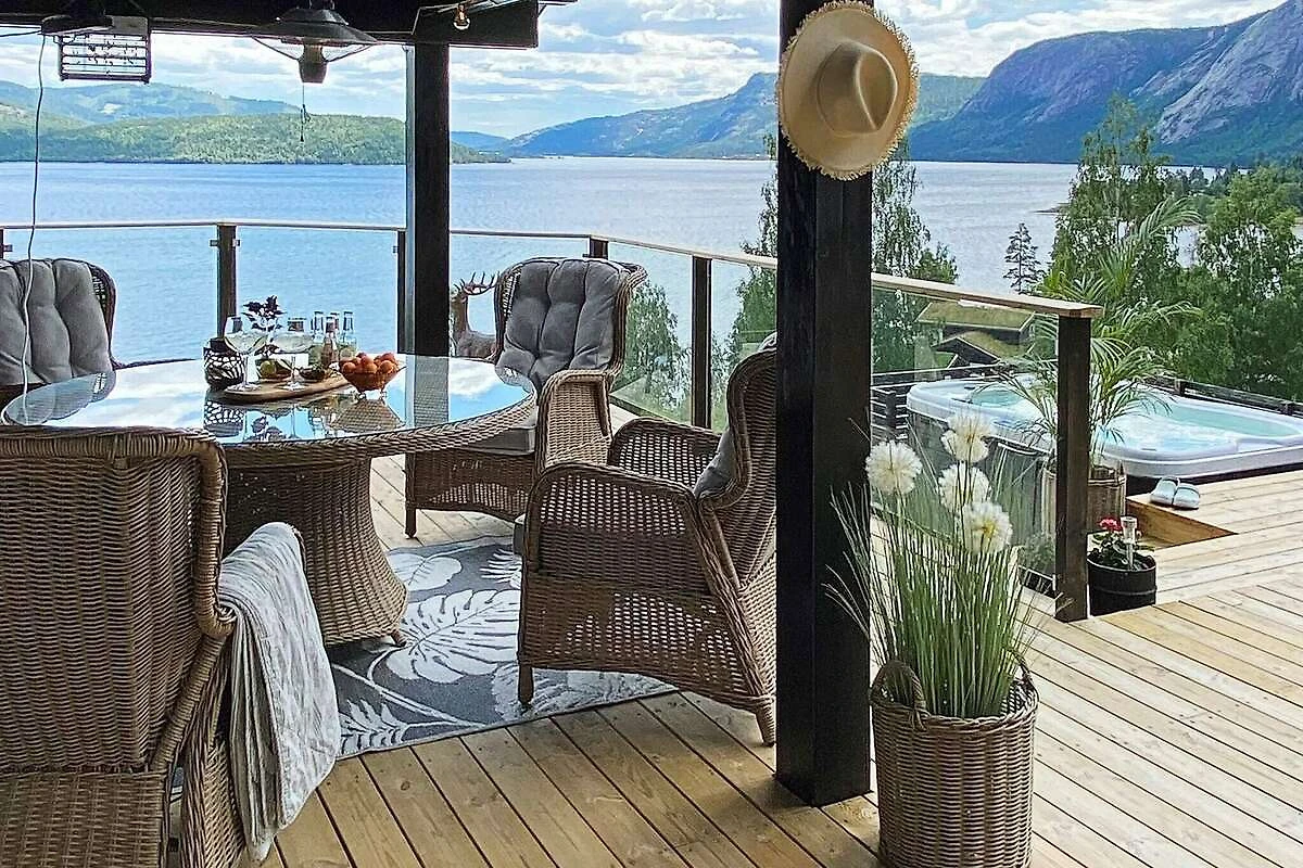 Attraktives Ferienhaus in idyllischer Umgebung am Wasser bei Nissedal. Fantastischer Ausblick zu See und Bergen, den man von der Terrasse oder dem herrlichen Außen-Whirlpool aus genießen kann! Das geschmackvoll eingerichtete Ferienhaus bietet viele Annehmlichkeiten. Im Erdgeschoss großes Wohnzimmer und Küche mit Panoramablick zum Wasser sowie Zugang zu einer großen Terrasse. Das Terrassengeländer besteht aus Glas, damit Sie die großartige Aussicht wirklich genießen können. Auf dieser Etage befinden sich auch ein modernes Badezimmer und eine praktische Waschküche sowie ein Schlafzimmer mit einem Doppelbett und Zugang zur Terrasse. Oben im Dachgeschoss findet man ein Loft-Wohnzimmer mit doppelter Schlafcouch, zudem ein Badezimmer und zwei Schlafzimmer mit je einem Doppelbett. Außerdem Balkon oben. Nebenan auf dem Grundstück steht ein separater Annex mit Veranda am Eingang sowie Schlafzimmer mit Doppelbett und Badezimmer. Bitte beachten Sie, dass Bettwäsche bei diesem Haus inklusive ist. Handtücher müssen mitgebracht werden. Die Außenbereiche auf dem Grundstück sind fantastisch, mit vielen Sitzbereichen, einer Außenküche, ansprechender Bepflanzung und einem schönen Whirlpool mit Panoramablick.\ Nissedal bietet großartige Wandermöglichkeiten und eine fantastische Landschaft. Im Winter verlaufen Langlaufloipen direkt an der Hütte, und wenn Sie Alpinski fahren möchten, sind es ca. 20 Minuten zum Gautefall Alpinsenter mit insgesamt 16 Abfahrten und vielen Möglichkeiten für Jung und Alt. Im Sommer sind Sie nur wenige Schritte vom Strand und den wunderschönen Felsklippen von Nisser entfernt. Hier bietet es sich auch an, auf Wunsch ein Kajak mitzubringen. Es gibt gute Radwege und ein sehr beliebtes Gebiet zum Mountainbiken. Sie können um Nisser herum nach Fjonesundet radeln, etwa 40 km. Hier können Sie Norwegens kleinste Seilfähre Fjoneferga sehen, eine Attraktion für sich. Das Kletterzentrum Nissedal ist nur 10 Minuten entfernt. In den Wintermonaten mit viel Schnee kann der letzte Hügel hinauf zur Hütte eine kleine Herausforderung sein, aber die Hütte liegt in einer Sackgasse und Sie können am Fuße des Hügels parken und die paar Meter den letzten Hügel zu Fuß zurücklegen.