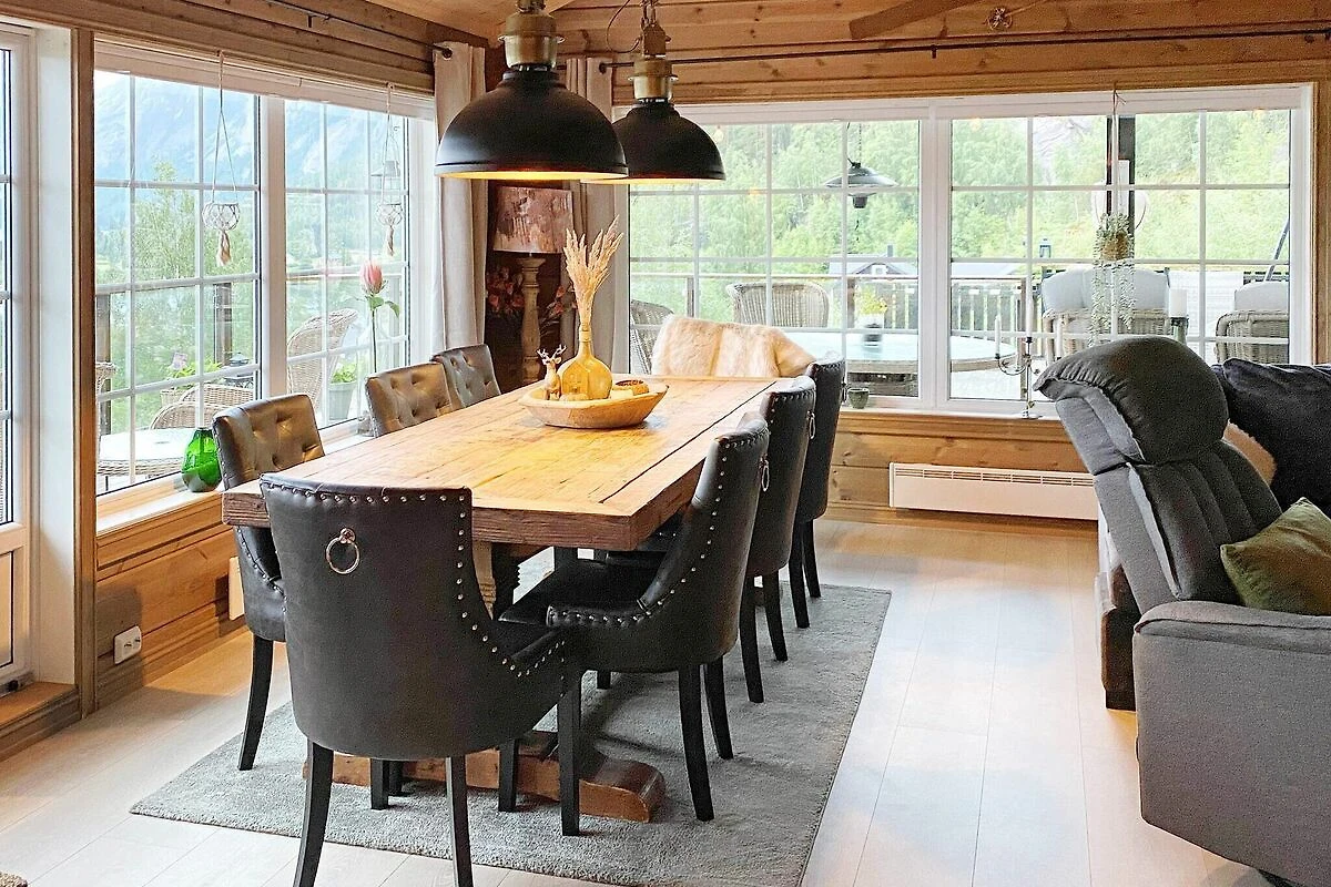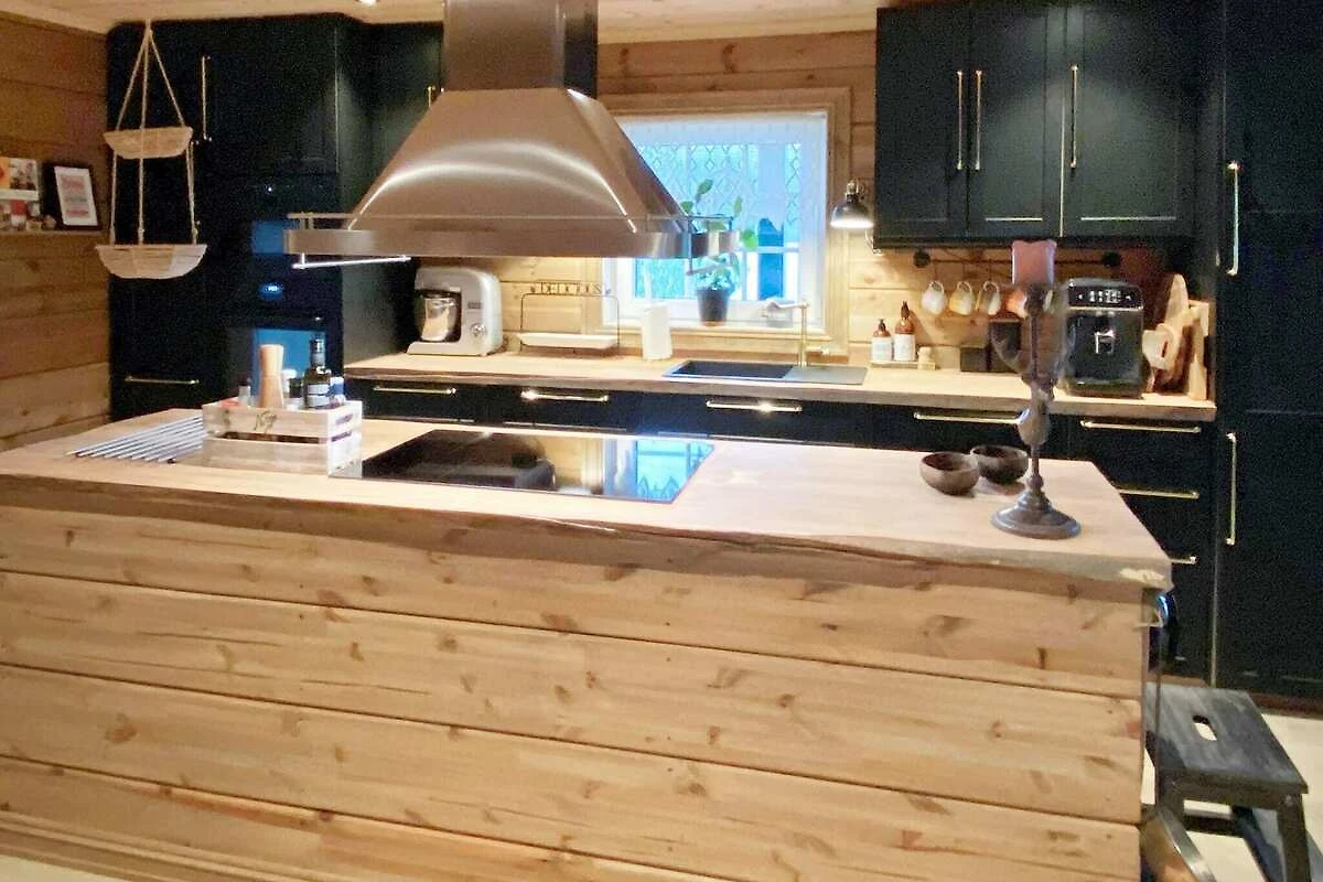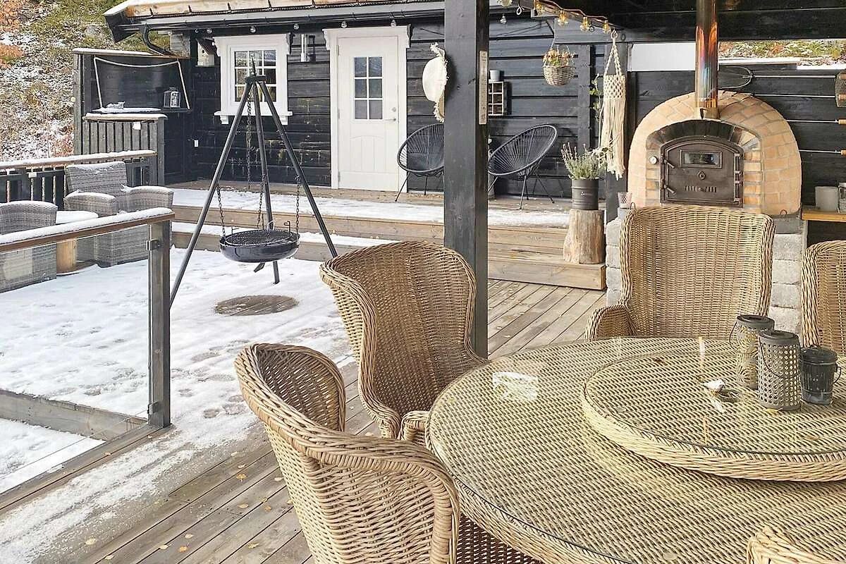 , open keuken(fornuis(elektrisch), afzuigkap, koffiezetapparaat(filtermaling), wafelijzer, magnetron, afwasmachine, koelkast, vriezer(1-59L), wasdroger, wasmachine), woon/slaapkamer(50 m2)(2-pers. vouwbed, TV(noorse TV zenders (NRK en TV2)), open haard), slaapkamer(2-pers. bed), slaapkamer(2-pers. bed), slaapkamer(2-pers. bed), badkamer(bad of douche, wasbak, toilet), badkamer(vloerverwarming)(bad of douche, wasbak, toilet), badkamer(vloerverwarming)(bad of douche, wasbak, toilet), bubbelbad(buiten, 4 personen), verwarming(elektrisch), terras(75 m2), terras(overdekt, 50 m2), tuinmeubilair, BBQ, parking