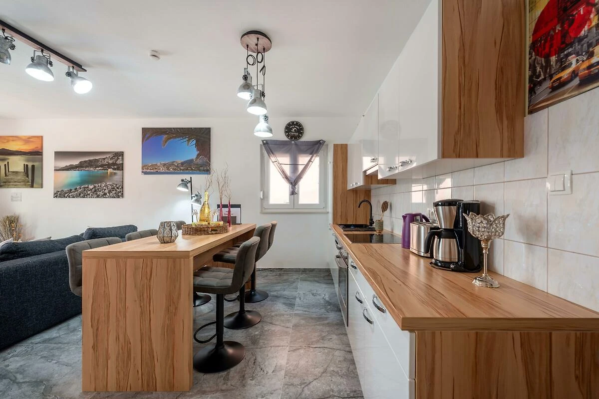 U kunt ook een paar minuten lopen in typische plaatsen (tavernes) Kroatische specialiteiten zoals vis of schelpdieren, vers gevangen uit de zee of genieten van een typisch Kroatische steenoven pizza en verwend te worden door de Kroatische gastvrijheid. U kunt ook op de promenade om een kopje koffie te genieten in de bars en tot rust komen. Als je gestopt zelf iets wilt koken in uw design keuken, zijn er verschillende supermarkten op loopafstand, waar u comfortabel kunt winkelen.