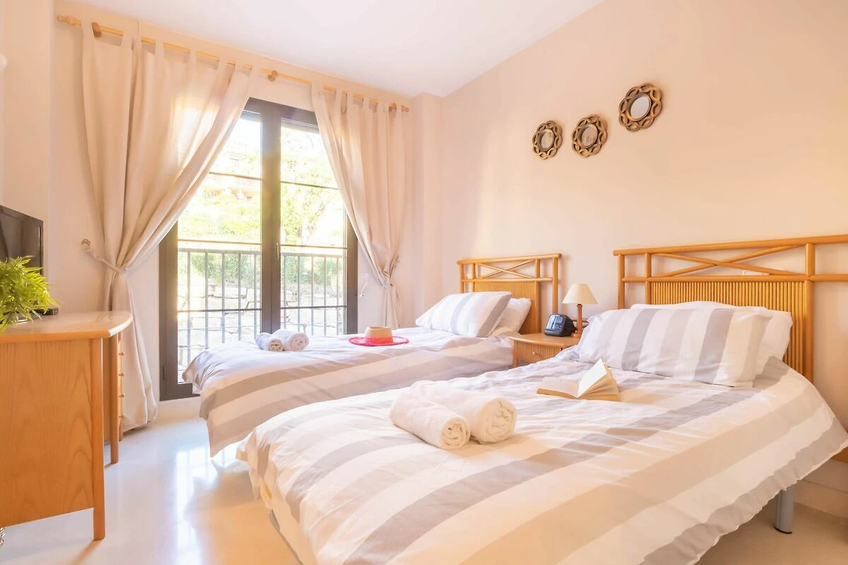 De accommodatie beschikt over twee slaapkamers met een tweepersoonsbed en één slaapkamer met twee eenpersoonsbedden, een badkamer met een bad, een toilet met een douche, een volledig uitgeruste keuken, een ruime woon-/eetkamer en een terras op het zuidwesten, toegankelijk vanuit de woonkamer en de hoofdslaapkamer. Vanaf hier kunt u genieten van de zonsondergang, de zee, de golfbaan, het zwembad, de bergen en zelfs de Marokkaanse kust op een heldere dag, evenals de Rots van Gibraltar.
