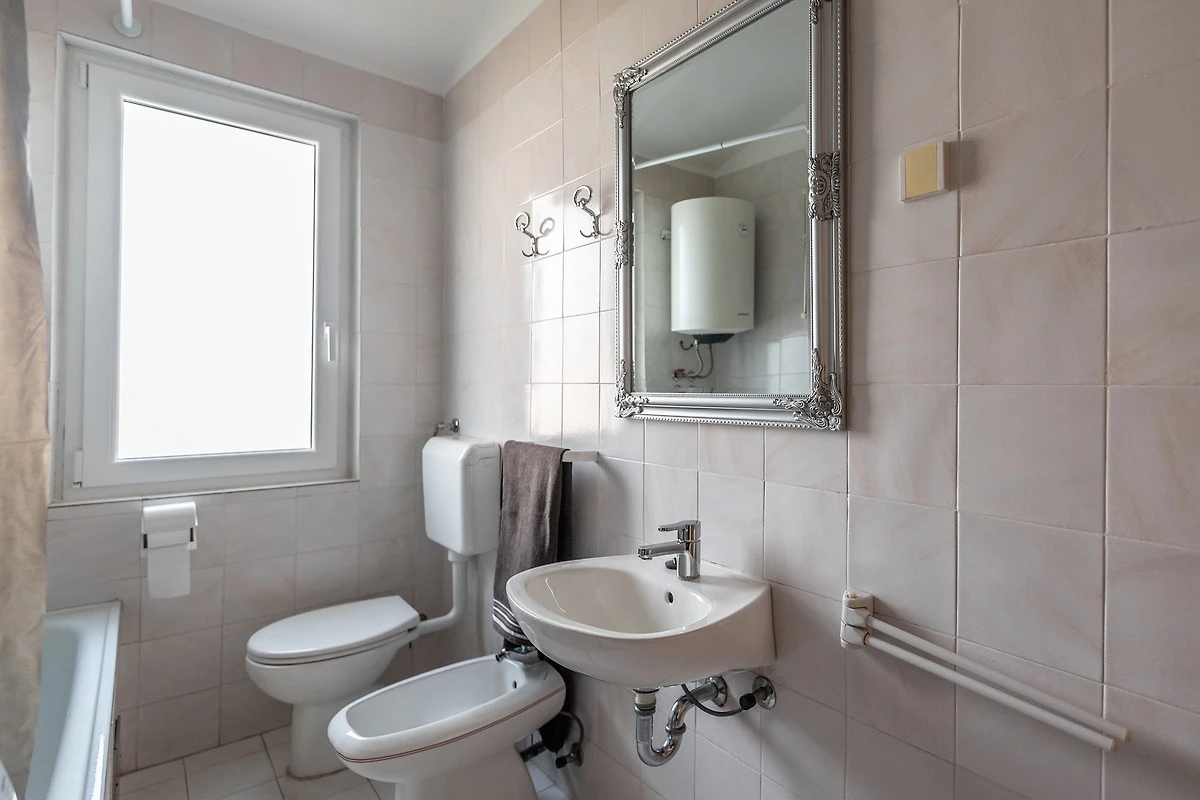 Gelegen aan de ingang van Pula, 3 km van het strand en 2 km van het stadscentrum (30 minuten lopen). De stranden van Valbandon en Puntižela liggen op ongeveer 3 km afstand. De stranden zijn meestal rotsachtig en kiezelachtig. Wij bevelen ook de stranden in Fažana aan, op 5 km afstand, en een bezoek aan het Nationaal Park Brijuni (eilanden).