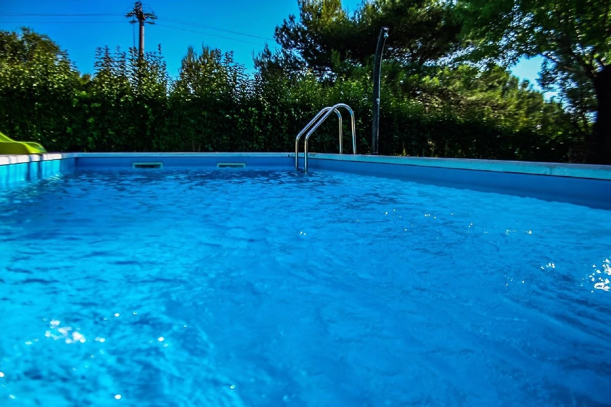 Het zwembad met zoet water en plastic wanden is 6,5 x 3 m en ongeveer 1,35 m diep, waardoor het ideaal is voor de veiligheid van kinderen. Het buitenzwembad is geopend van mei tot oktober, afhankelijk van het weer. Het is een privézwembad dat alleen door de gasten van de villa wordt gebruikt.