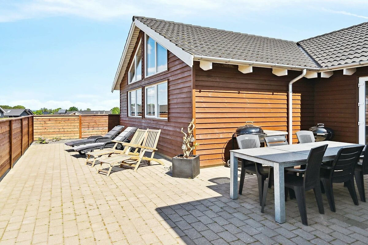 Poolhaus für 18 Personen am Skåstrup Strand auf FünenIn der Nähe des beliebten Skåstrup Strands und unweit der vielen Attraktionen Nordfünens bietet dieses schöne Skanlux-Poolhaus das ganze Jahr über einen tollen Urlaub voller Aktivitäten. Das Ferienhaus verfügt über einen eigenen Wasserpark, sodass Wasserratten im 18 m² großen Pool mit Wasserrutsche, römischer Treppe und Gegenstromanlage unbegrenzt toben können. Zum Entspannen empfehlen wir ein Bad im Whirlpool oder die hauseigene Sauna. Der Poolraum verfügt über Lautsprecher, die über die Anlage in der Küche gesteuert werden. Im Aktivitätsraum des Hauses können Sie Tischtennis, Tischfußball, Darts und Billard spielen. So können sich alle Gäste beim Abendessen austoben und miteinander wetteifern. Das Abendessen lässt sich bequem in der großen, funktionalen Küche zubereiten, die mit zwei Backöfen mit je vier Kochstellen, zwei Geschirrspülern und zwei großen Kühl-/Gefrierschränken ausgestattet ist.Der Aktivitätsraum verfügt außerdem über eine Bar mit zusätzlichem Kühlschrank, einem Bilderrahmen mit Getränkerezepten und einem guten Partylautsprecher mit Lichteffekten. Außerdem gibt es zwei Moccamaster-Kaffeemaschinen. Die Bar ist mit drei Barhockern und einem Barset bestehend aus Champagnerkühler, Eiszange und Shaker ausgestattet. Mit Blick auf den Billardraum können alle Gäste gemeinsam am langen Esstisch sitzen und ein köstliches Essen genießen. Die Wohnküche verfügt außerdem über eine gemütliche Sofaecke mit 55-Zoll-Flachbildfernseher und Soundbar. Nach einem ereignisreichen Tag können Sie in einem der sieben Schlafzimmer oder auf dem Dachboden, der Platz für vier Übernachtungsgäste bietet, Ihren Schönheitsschlaf finden. Ein Safe ist im Haus installiert. Die teilweise überdachte Terrasse lädt ganzjährig zum Grillen ein, und im Sommer können Sie auf den Gartenmöbeln die Sonne genießen. Die Terrasse ist eingezäunt, aber nicht für kleine Hunde geeignet. Der Garten lädt mit einem Trampolin (ohne Netz) und einer Schaukel zum Ballspielen und Spielen ein.Es gibt zwei Holzkohlegrills.Die Gäste müssen die Nebenkosten mit dem Hausmeister vor Ort abrechnen.