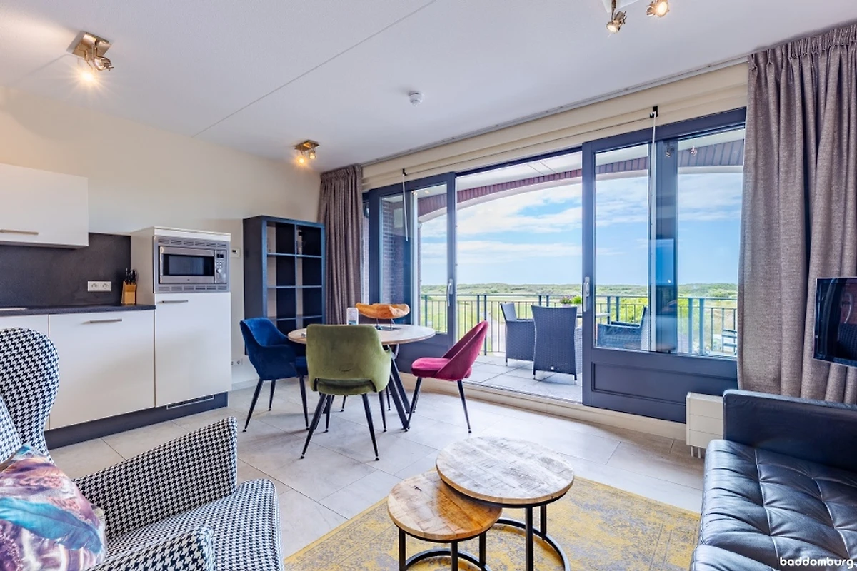 Die Residence Ruimzicht bevindt zich in een rustige ligging aan de rand van Domburg en biedt een prachtig uitzicht over de duinen en deels op zee. Direct aangrenzend ligt de golfbaan, en zowel het strand als het charmante centrum van Domburg liggen op slechts ongeveer 300 meter afstand.