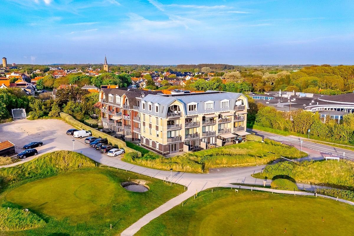 De Residence Ruimzicht bevindt zich aan de rustige rand van Domburg en biedt een prachtig uitzicht op de duinen en de aangrenzende golfbaan. Het gebouw past harmonieus in de charmante architectuur van de kustplaats. Het strand ligt op slechts ongeveer 300 meter afstand, en ook het levendige centrum van Domburg bereikt u gemakkelijk te voet.