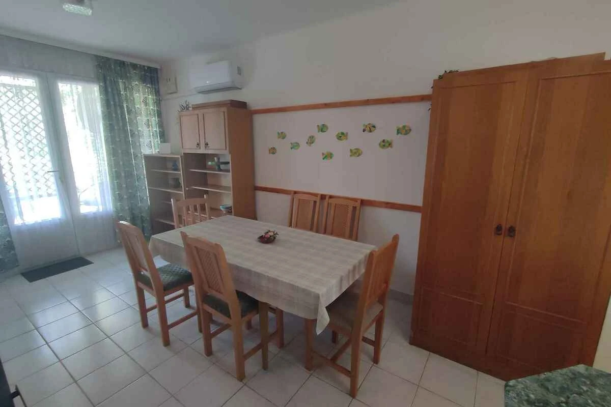 Ligging: Siófok-Sóstó. Het in 1989 gebouwde en in 2021 gerenoveerde vakantiehuis is twee-onder-één-kap en functioneel ingericht. Het grondstuk is in een vakantiehuis-gebied aan de rand van de plaats. Deze plaats is populair vanwege het ligt op een rustige en zonnige plek. De toegangsweg naar het terrein gaat via een geasfalteerde zijstraat. Bij het vakantiehuis zijn U 2 parkeerplaatsen voor meerdere auto's op het perceel beschikbaar. De dichtsbijzijnde winkels zijn op 800 m afstand, restaurant 800 m en centrum 4 km.
