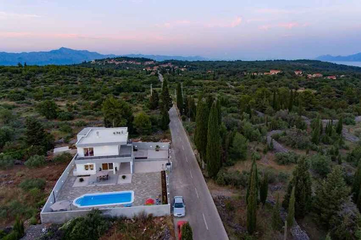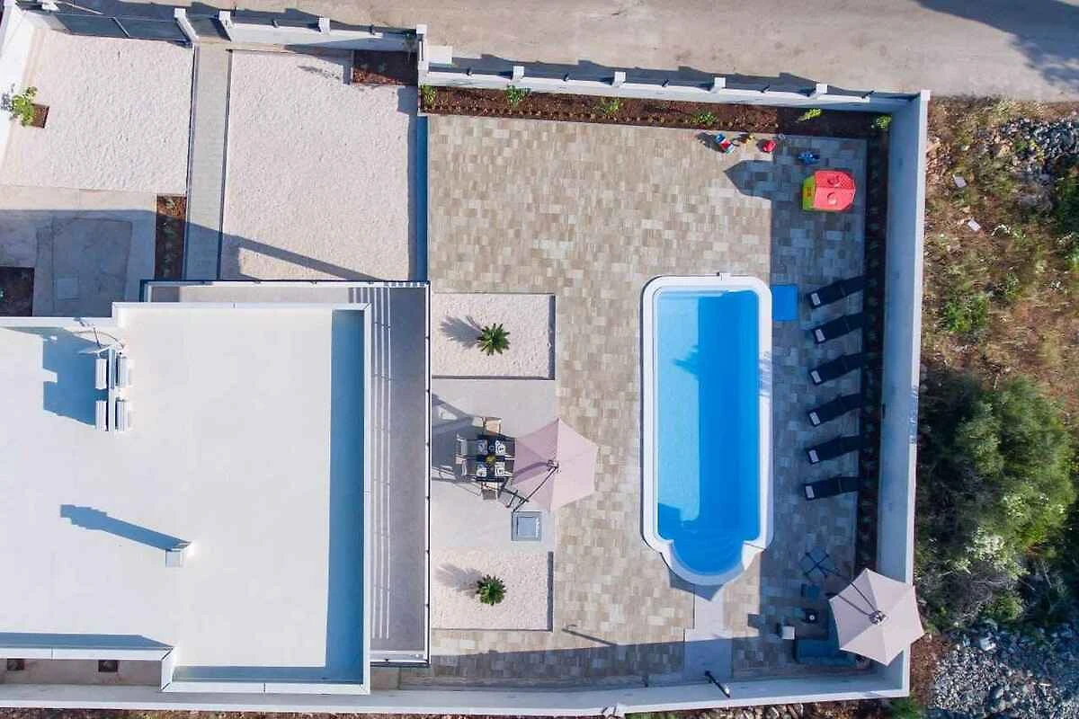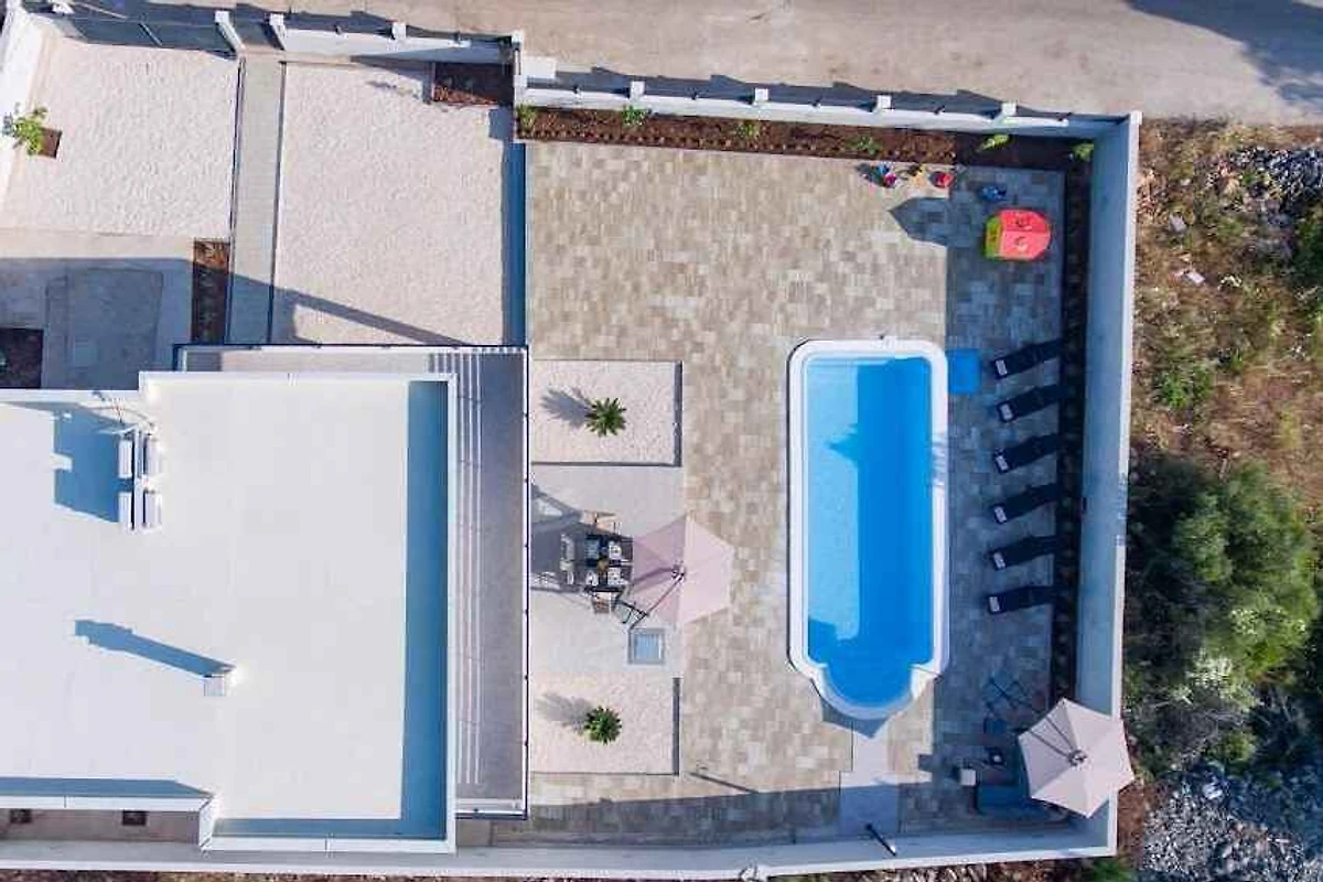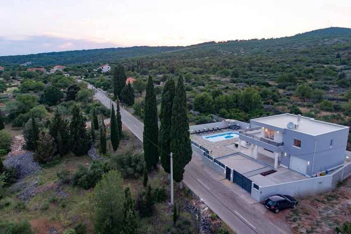 Ligging: Bogomol. De vrijstaand villa is modern ingericht. Het grondstuk is in een vakantiehuis-gebied aan de rand van de plaats. Deze plaats is populair vanwege het ligt op een rustige en zonnige plek. De toegangsweg naar het terrein gaat via een geasfalteerde hoofdweg. Bij de villa zijn parkeerplaatsen in een garage en op het perceel beschikbaar. De dichtsbijzijnde winkels zijn op 500 m afstand, restaurant 800 m en centrum 3 km.