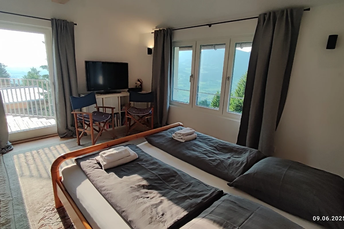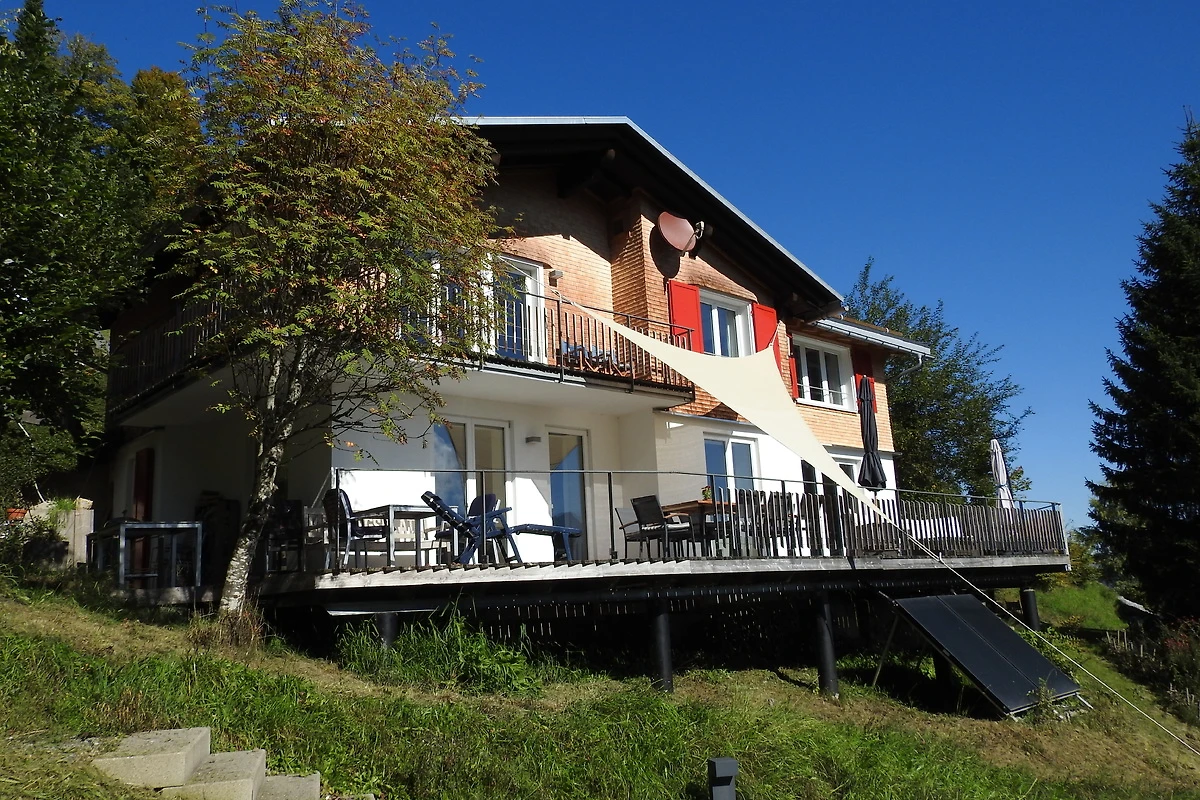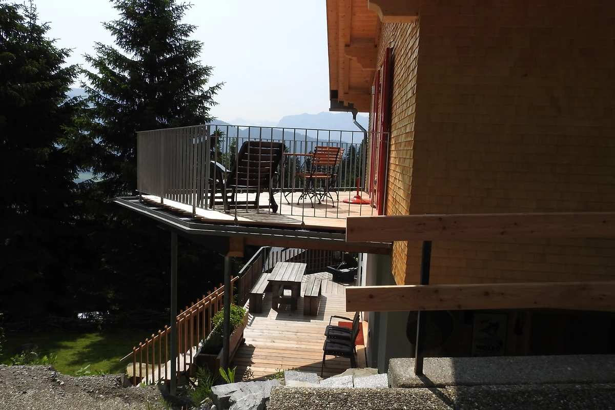 De exacte routebeschrijving naar Egg vindt u op de kaart hieronder. In Egg rijdt u in de richting van Schwarzenberg/Bödele, maar slechts tot aan een elektriciteitshuis, ongeveer 200 m na de brug over de Bregenzer Ach. Sla daar rechtsaf en volg het bord voor de Alpenrose herberg de heuvel op. Rij naar de Alpenrose, haal uw sleutel op en volg de privéweg tot u bij de eerste (en enige) afslag links komt. Neem dit en rijd naar de achterkant van het bos. Daar ziet u uw vakantiehuis, dat u gemakkelijk kunt herkennen aan de foto's. Parkeerplaatsen zijn direct voor het huis