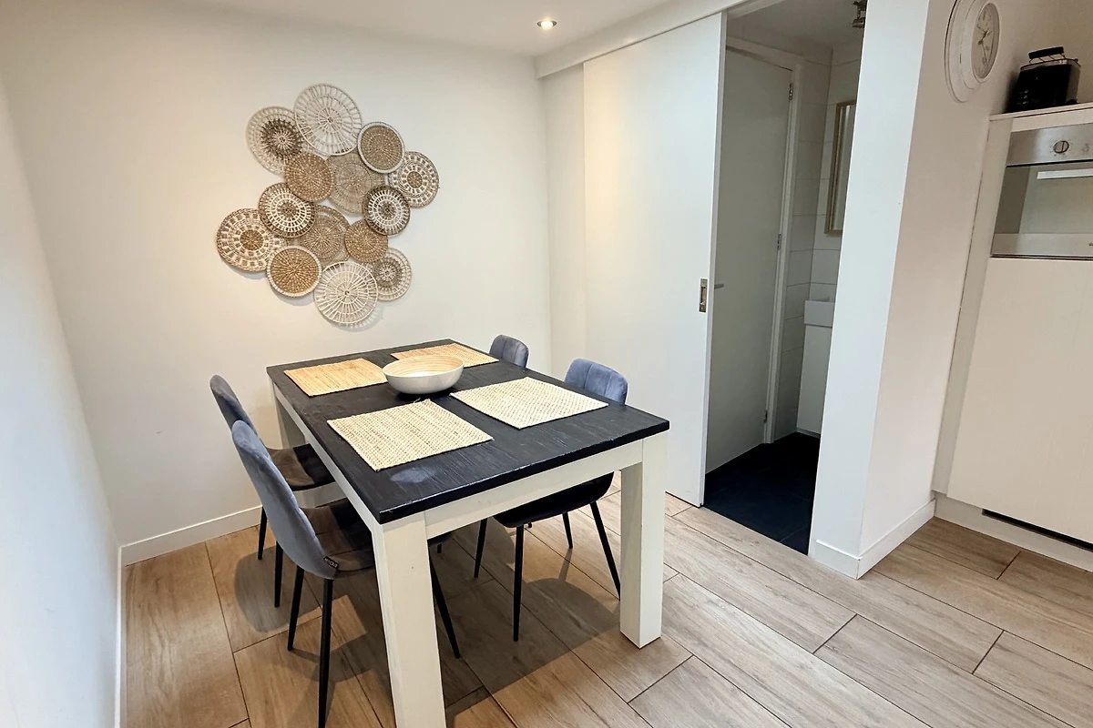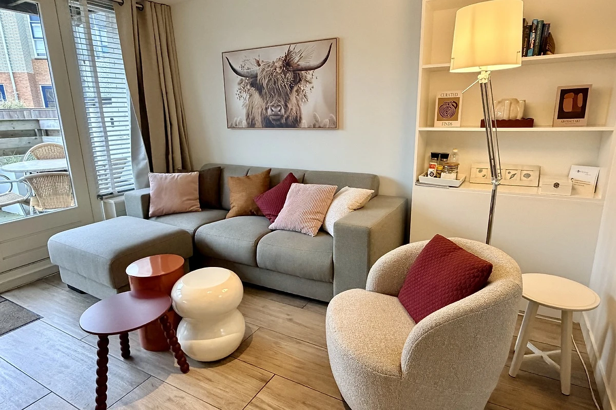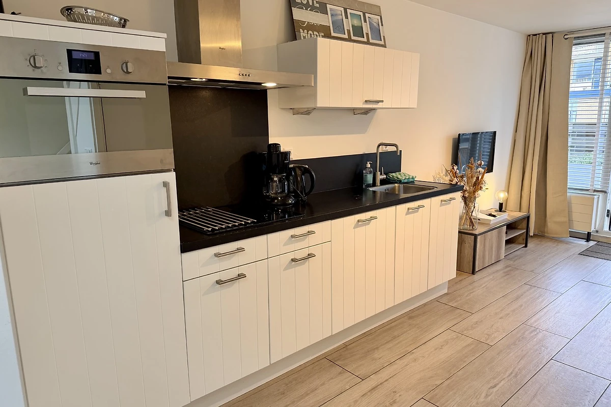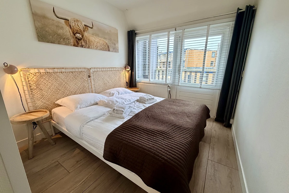 Slechts 200 meter van het strand verwijderd! Smaakvol en modern ingericht vakantieappartement bijna aan het strand. Vanaf uw eigen, op het zuidwesten gelegen terras komt u in een woonkamer met tv en zithoek, een goed uitgeruste keuken met vaatwasser en oven/magnetron. Via een wat steile trap bereikt u de 1e verdieping. Via een wat steile trap bereikt u de twee slaapkamers en de badkamer. De kleine badkamer is uitgerust met een douche en een wastafel. Het toilet bevindt zich op de begane grond.