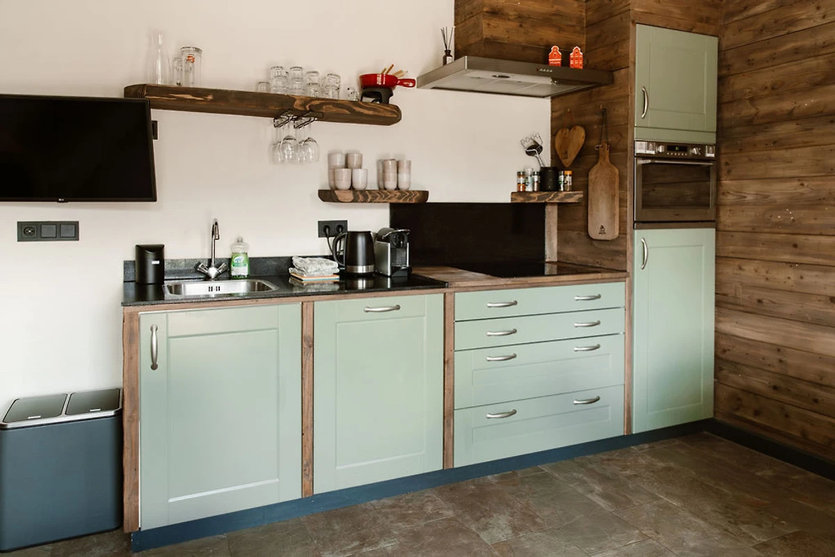 Jorik heeft zijn appartement zelf gebouwd. Hij is timmerman in de zomer en gespecialiseerd in traditionele bouw. Alle traditionele elementen heeft hij zelf gemaakt. In het appartement de kasten en raamkozijnen en houten wanden. Alles geeft het appartement dit geeft het appartement een gezellige, moderne alpensfeer.