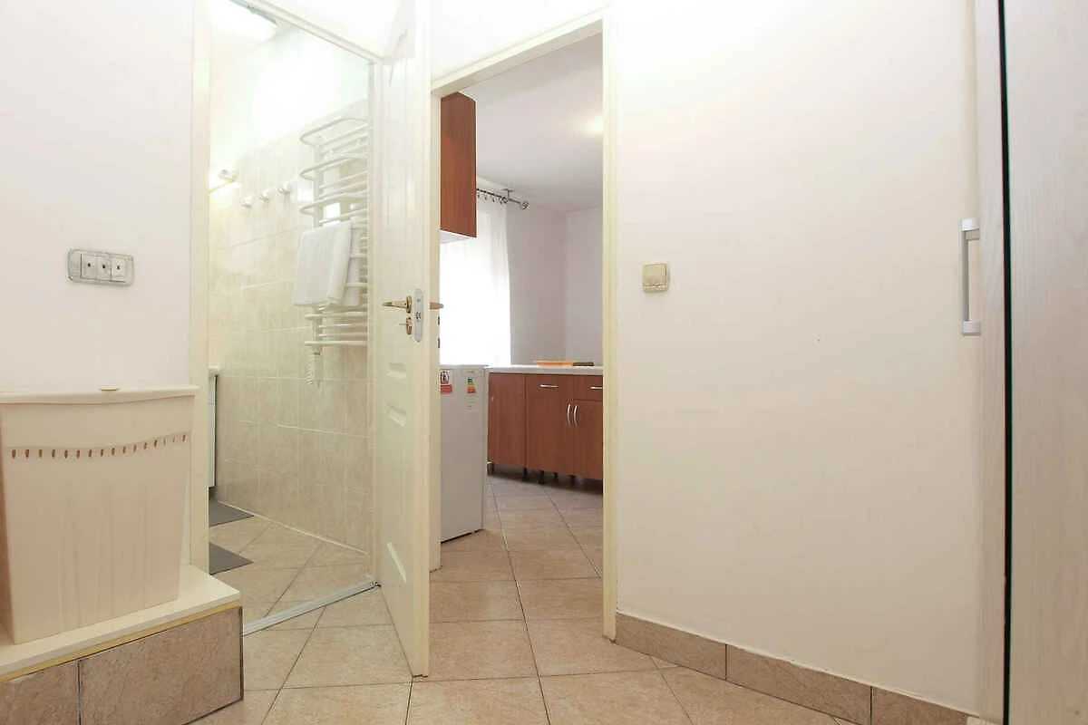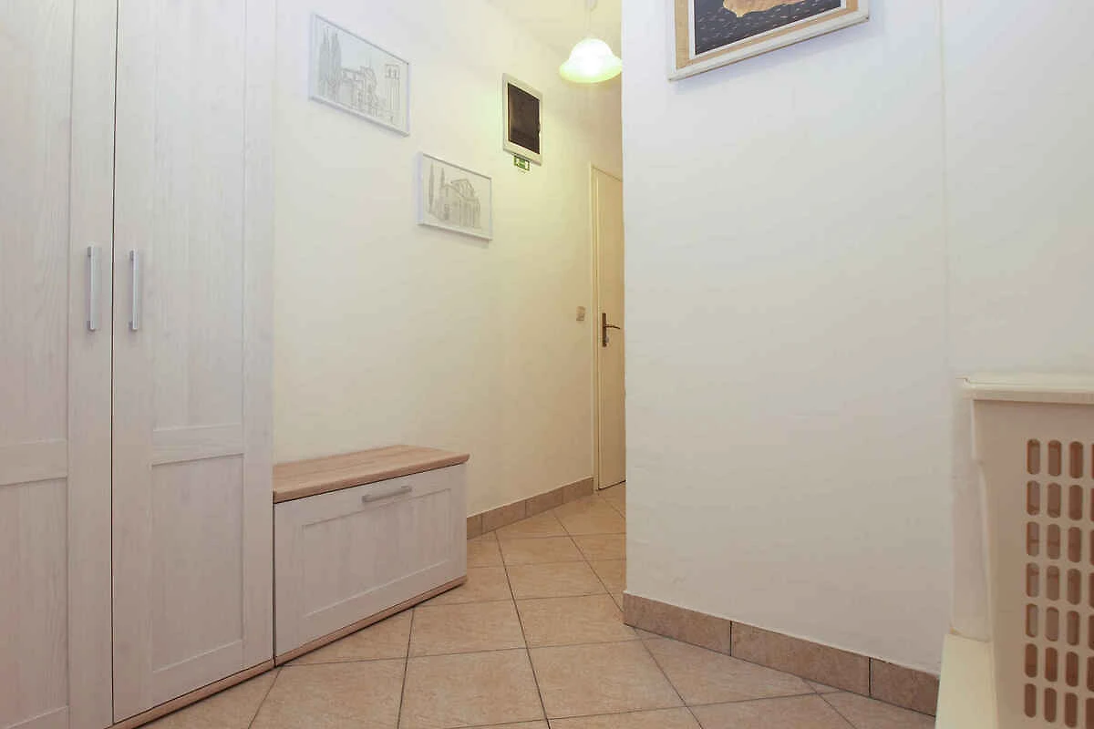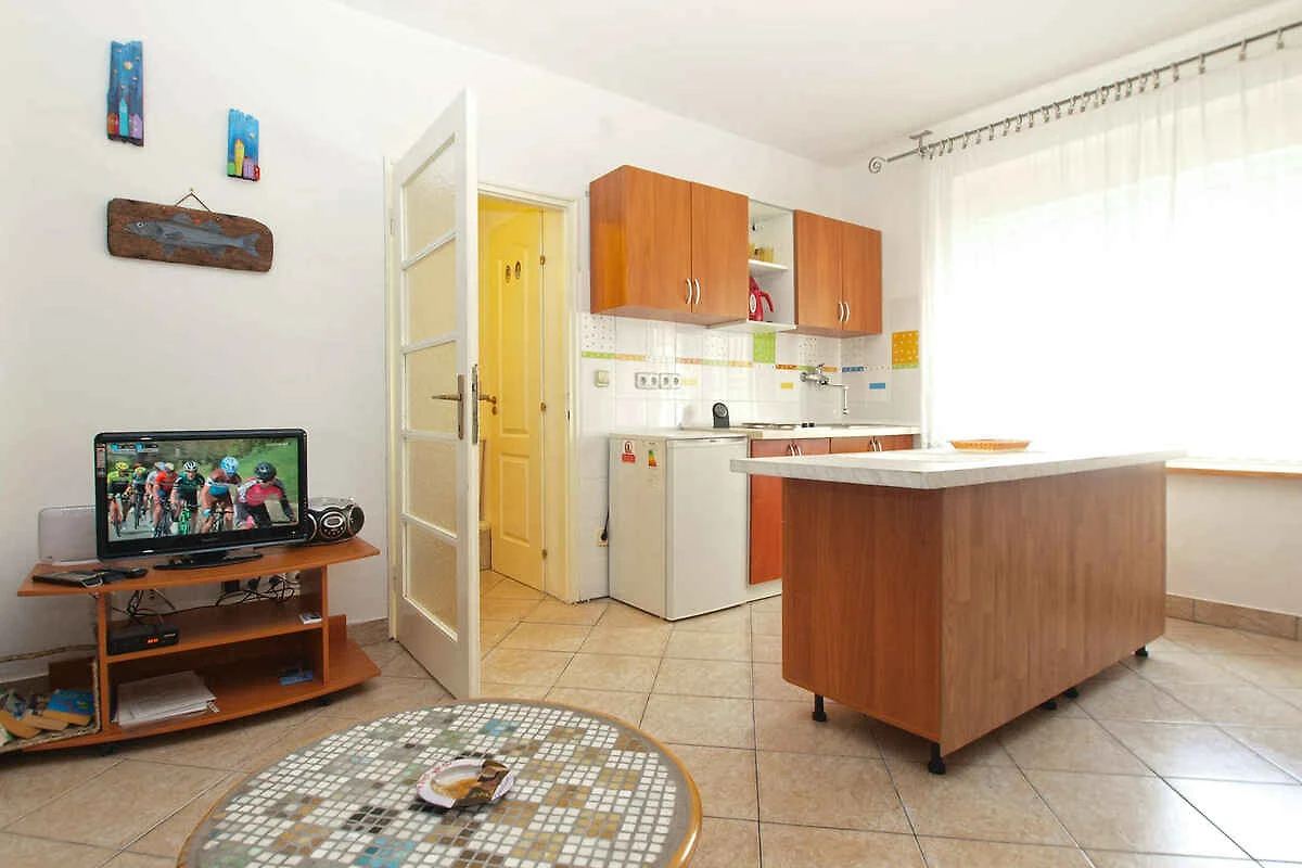 Ligging: Fažana. De vakantiewoning ligt in een appartementenhuis en is functioneel ingericht. Het grondstuk is in het centrum. Deze plaats is populair vanwege het ligt op een rustige en zonnige plek. De toegangsweg naar het terrein gaat via een geasfalteerde hoofdweg. Bij het huis zijn parkeerplaatsen op het perceel beschikbaar. De dichtsbijzijnde winkels zijn op 50 m afstand, restaurant 50 m en centrum 50 m. Pula: vliegveld 13 km en apotheek 13,2 km.