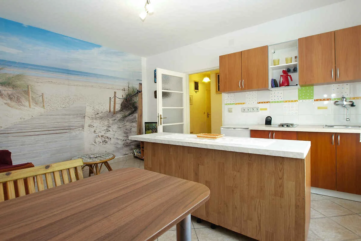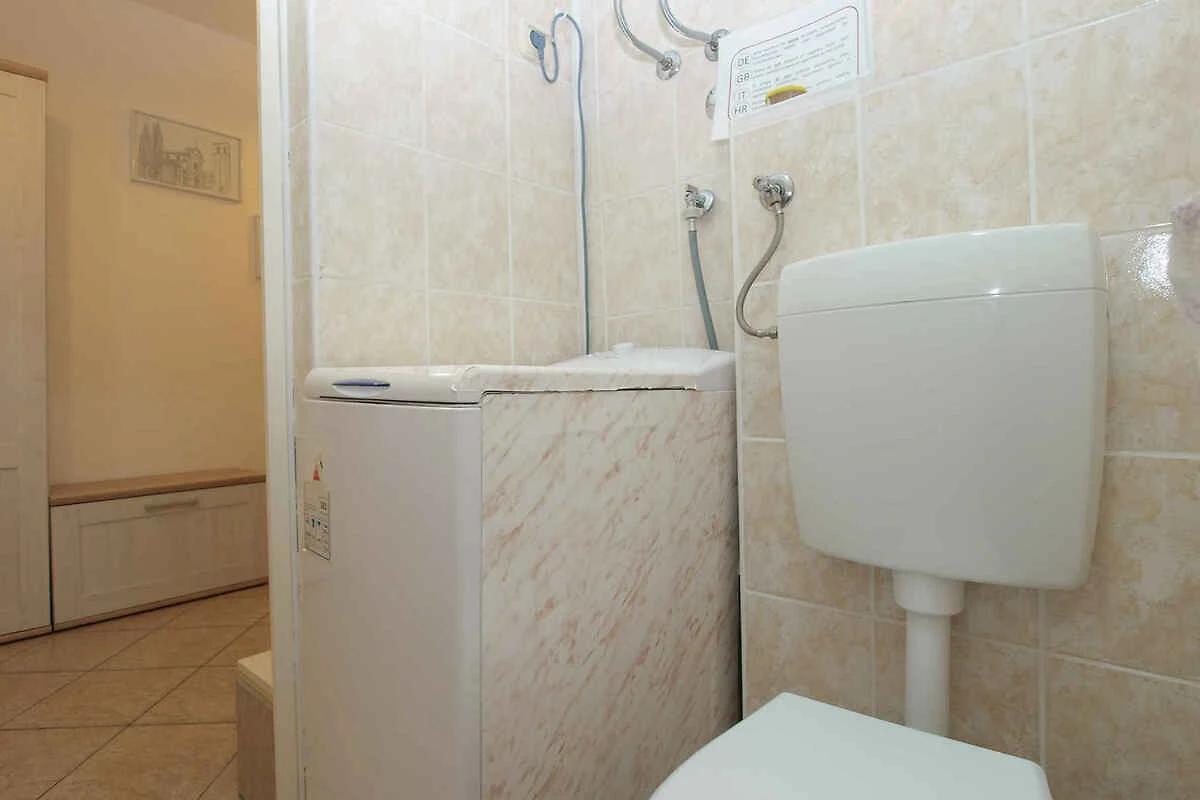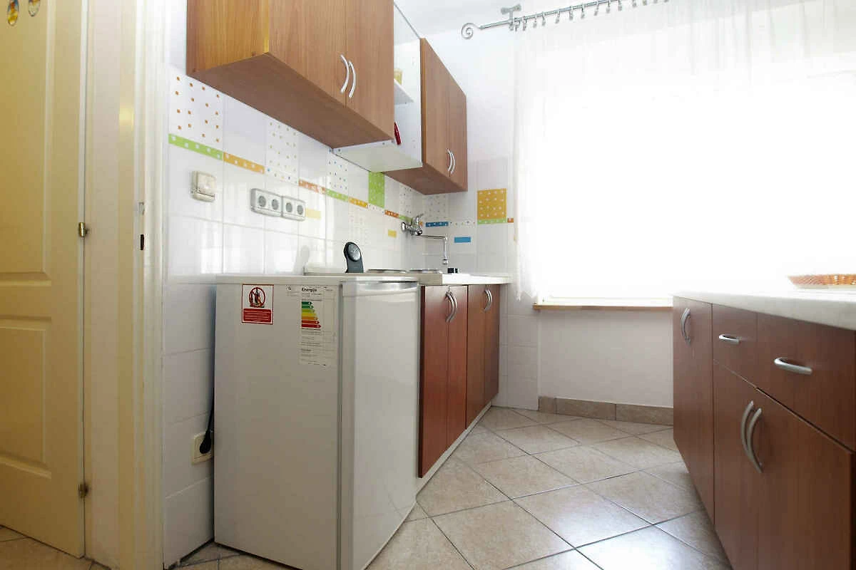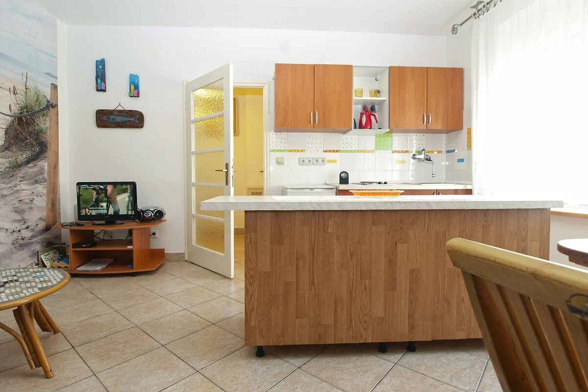 Ligging: Fažana. De vakantiewoning ligt in een appartementenhuis en is functioneel ingericht. Het grondstuk is in het centrum. Deze plaats is populair vanwege het ligt op een rustige en zonnige plek. De toegangsweg naar het terrein gaat via een geasfalteerde hoofdweg. Bij het huis zijn parkeerplaatsen op het perceel beschikbaar. De dichtsbijzijnde winkels zijn op 50 m afstand, restaurant 50 m en centrum 50 m. Pula: vliegveld 13 km en apotheek 13,2 km.