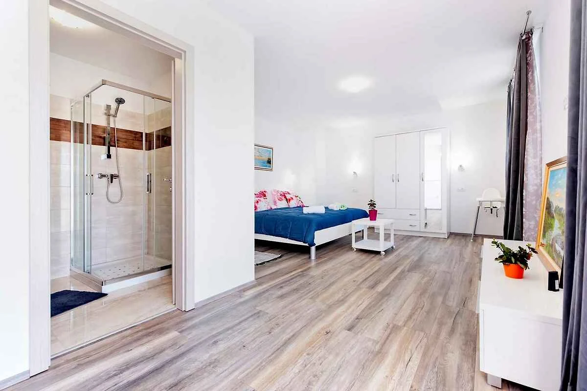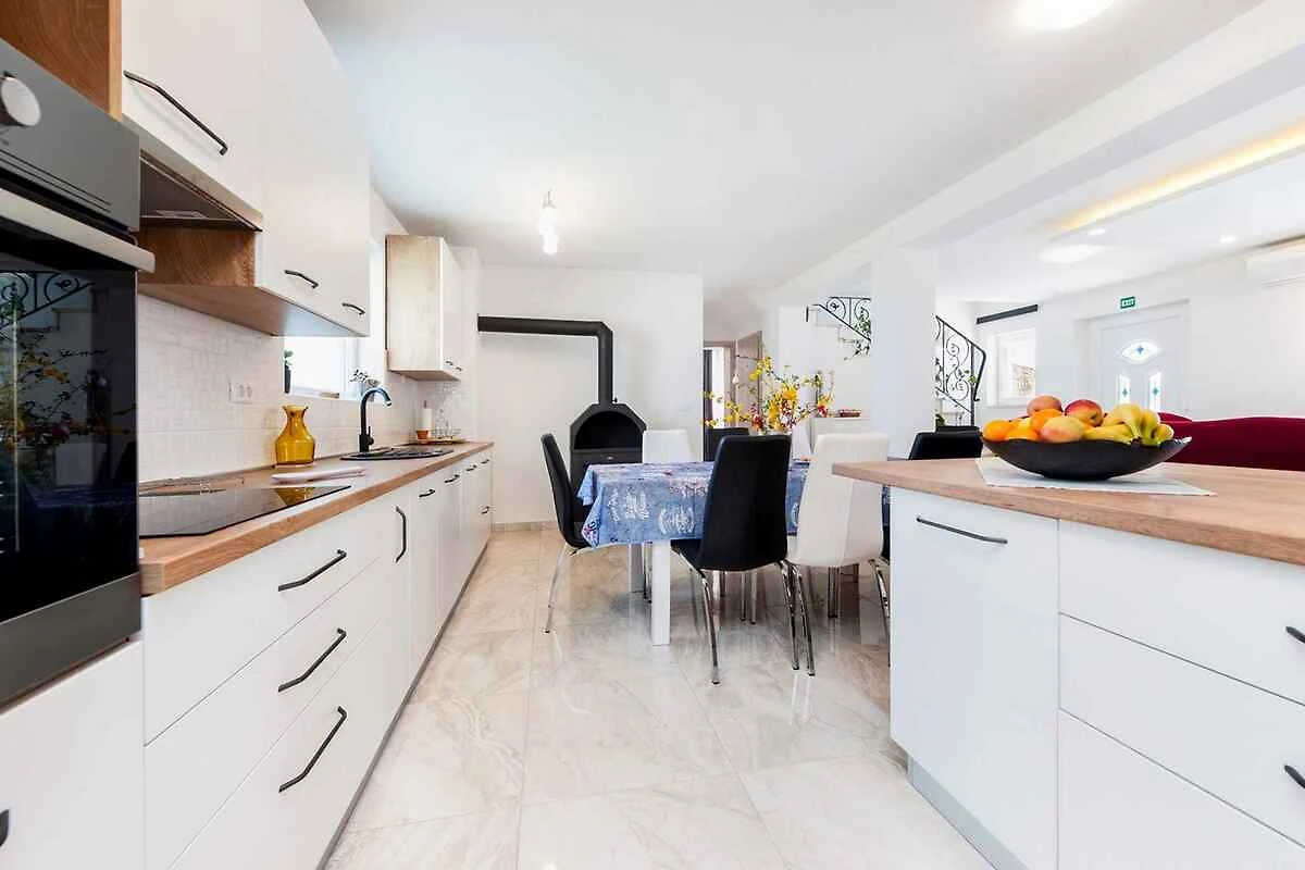 Ligging: Žminj. Het vrijstaand vakantiehuis is modern ingericht. Deze plaats is populair vanwege het ligt op een zonnige plek.: Žminj ligt in centraal Istrië. Maak een wandeling door het middeleeuwse stadscentrum en bekijk de kerken met fresco's, de overblijfselen van stadsmuren en torens Bij het vakantiehuis is U 1 parkeerplaats voor een auto beschikbaar. Openbare parkeerplaatsen zijn op de straat voor het huis. De dichtsbijzijnde winkels zijn op 500 m afstand en restaurant 500 m.