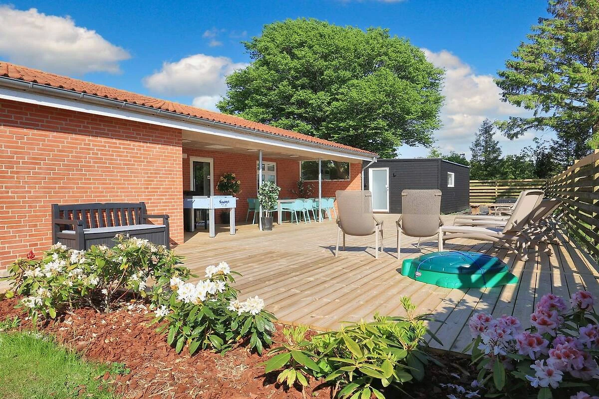 Dieses 2023 ansprechend renovierte Ferienhaus mit Whirlpool und Sauna im Außenbereich bietet den perfekten Rahmen für einen erholsamen Aufenthalt! Es liegt attraktiv, nur einen Steinwurf vom Zentrum in Marielyst, mit Einkaufsmöglichkeiten, Restaurants, Erlebnissen, und einem der besten Badestrände Dänemarks entfernt. In der Küche des geräumigen Hauses gibt es u.a. Induktionsherd, separaten Backofen, Mikrowelle, Kühlschrank und Kaffeemaschine sowie Geschirrspüler. Das geräumige Wohnzimmer ist mit einer gemütlichen Sitzecke mit U-förmiger Sitzecke sowie Smart-TV, einer Essecke und einem weiteren Sofa, vor der Spielekonsole und dem Smart-TV, ausgestattet. Es gibt zwei Badezimmer mit Toilette, Waschbecken und Dusche im Haus, eines zudem mit einer Badewanne über Eck. Die drei Schlafzimmer sind aufgeteilt in ein Familienzimmer mit Doppelbett und Etagenbett und zwei Zimmer mit je zwei Einzelbetten (beachten Sie bitte, dass es sich bei diesen beiden Zimmern um Durchgangszimmer handelt). Im gut isolierten, separaten Annex gibt es außerdem zwei weitere Schlafplätze. Das Ferienhaus verfügt außerdem über einen großen, praktischen Hauswirtschaftsraum am Hintereingang, mit Umkleidebereich und zusätzlichem Kühl-/Gefrierschrank. Im gesamten Haus gibt es angenehme Fußbodenheizung und die Beheizung des Hauses erfolgt über eine klimafreundliche Luft-Wasser-Wärmepumpe. Genießen Sie die Sonne draußen auf der großen Holzterrasse in den Gartenmöbeln oder auf den Sonnenliegen. Wenn der Abend naht, können Sie diesen auf der überdachten Terrasse ausklingen lassen, während Sie auf dem Grill ein köstliches Essen zaubern. Für die Kinder gibt es Tischfußball auf der überdachten Terrasse. Das große, eingezäunte Naturgrundstück lädt zum Spielen ein. Es gibt einen Sandkasten für die ganz Kleinen. Entspannen können Sie auch im Wellnessbereich, wo eine weitere überdachte Terrassenfläche für gemütliche Momenten in den Loungesesseln einlädt. Der Wellnessbereich im Freien bietet einen Whirlpool, eine Sauna und eine praktische Außendusche mit heißem und kaltem Wasser. Es gibt eine Ladestation für Elektroautos: Typ 2-IEC 62196-2. Keine Vermietung an Jugendgruppen erwünscht!A refundable deposit might be charged closer to your check-in date. The security deposit ensures a smooth stay and covers any additional services or consumption charges.This deposit covers utilities consumed during your stay and any additional services that may be taken.The final amount will be adjusted based on actual meter readings, actual usage of extra services, and any remaining balance will be refunded within 21 days after checkout.This deposit simply acts as a prepayment for charges that you would anyways pay for, ensuring a seamless stay and check-out experience.