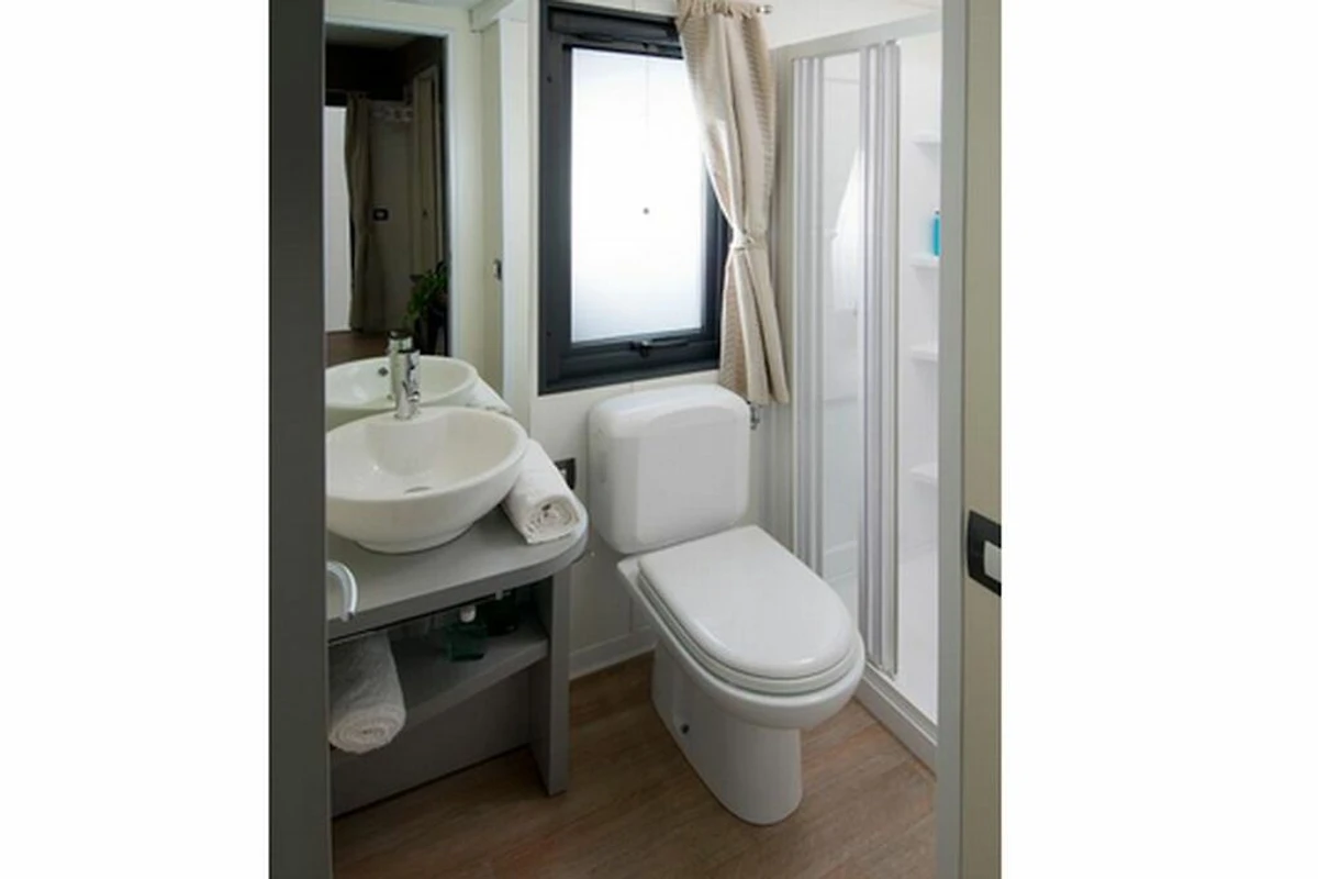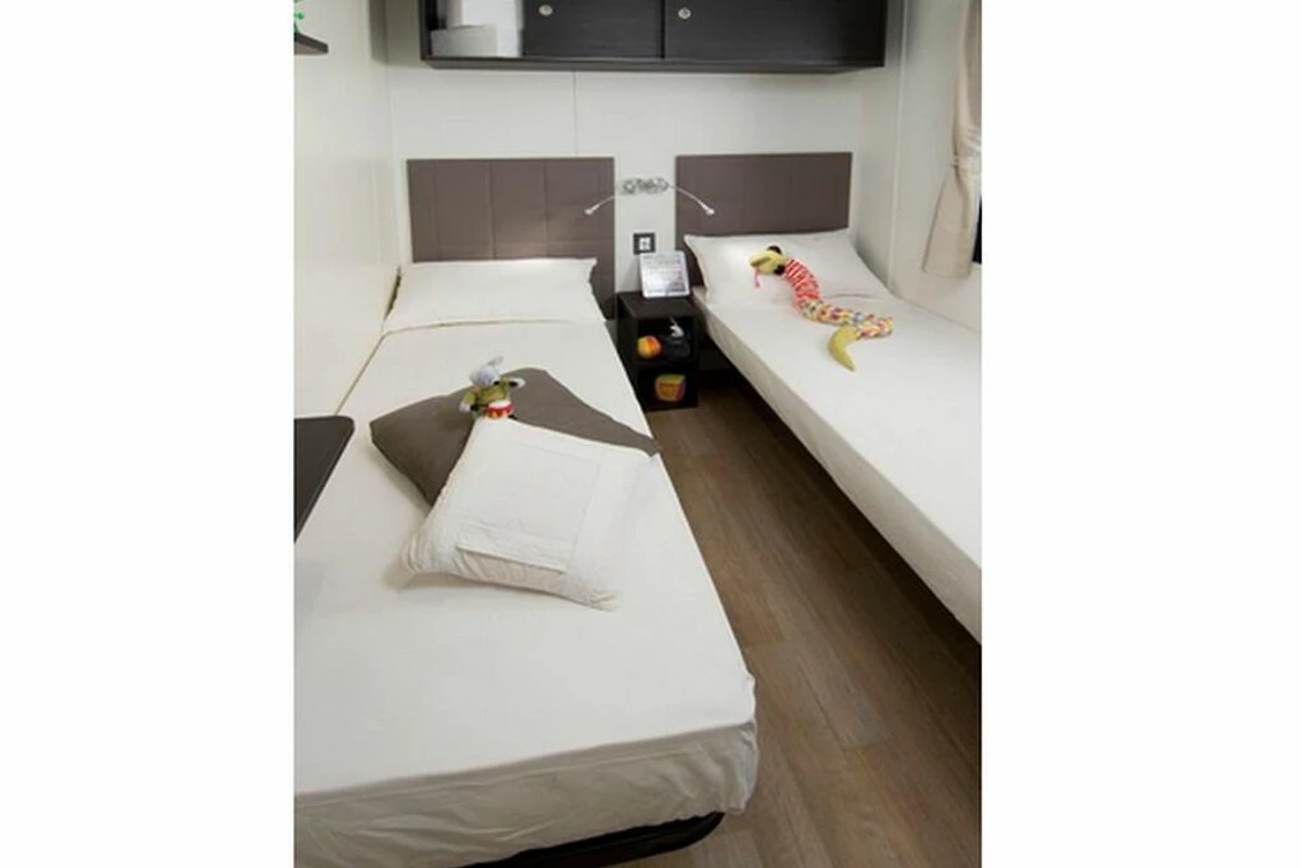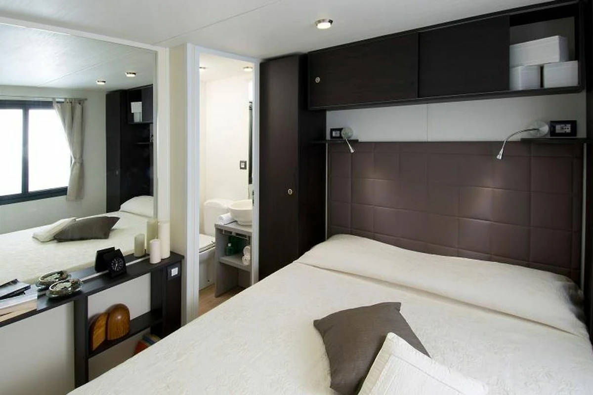 Schönes Mobilehome mit eine gut eingerichtete Küche.