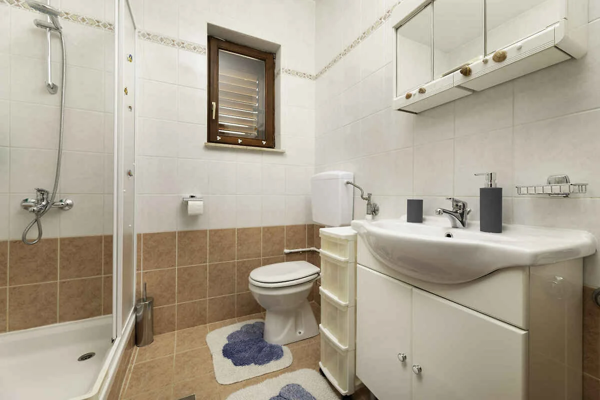 Ligging: Malinska. De vakantiewoning ligt in een appartementenhuis en is functioneel ingericht. Deze plaats is populair vanwege het ligt op een rustige plek. De toegangsweg naar het terrein gaat via een geasfalteerde straat. Bij het huis is U 1 parkeerplaats voor een auto op het perceel beschikbaar. De dichtsbijzijnde winkels zijn op 450 m afstand, restaurant 450 m en centrum 550 m. Malinska: dokter 500 m en apotheek, bank elk 550 m. vliegveld in Omišalj 15 km. station in Rivier 5 km.