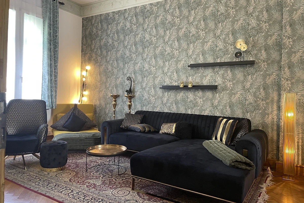 Het huis is elegant ingericht met veel Jugendstilelementen.