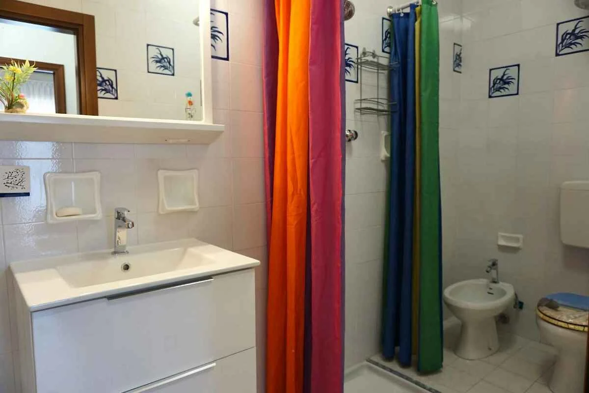 Ligging: Porto Santa Margherita. De vakantiewoning ligt in een appartementenhuis en is functioneel ingericht. Het grondstuk is in het centrum. Deze plaats is populair vanwege het ligt op een rustige plek. De toegangsweg naar het terrein gaat via een geasfalteerde hoofdweg. Bij het huis zijn parkeerplaatsen onder een carport beschikbaar. De dichtsbijzijnde winkels zijn op 30 m afstand, restaurant 30 m en centrum 50 m. thermaal bad in Bibione 65 km. discotheek, bank elk 4 km in Caorle. sauna in centro estetico 400 m. bioscoop in Fiume Veneto 75 km. overdekt zwembad in piscina comunale 500 m. Porto Santa Margherita: dokter 300 m en apotheek 350 m. station in Santo Stino di Livenza 15 km. vliegveld in Venezia 65 km. Een kinderspeelplaats op 150 m afstand. spoorlijn 15 km en hoofdweg 500 m.