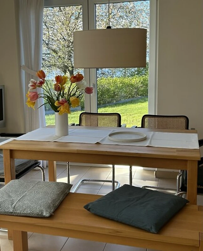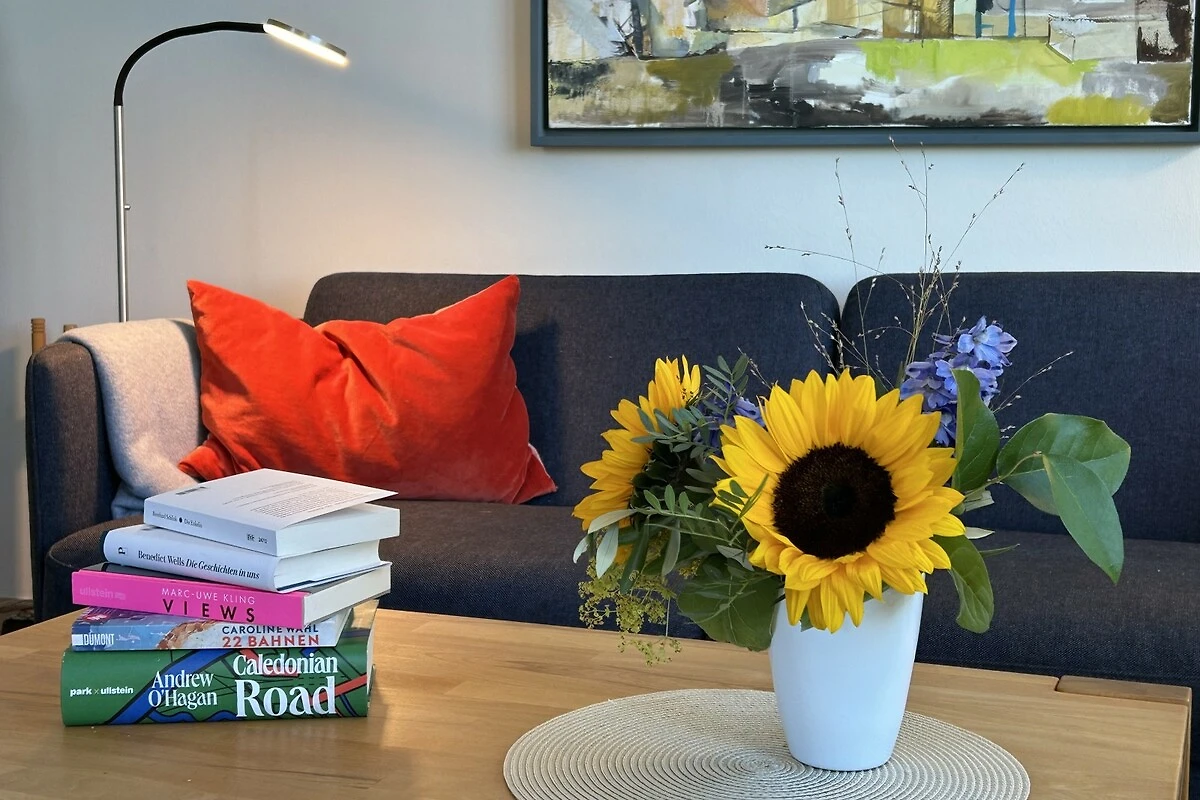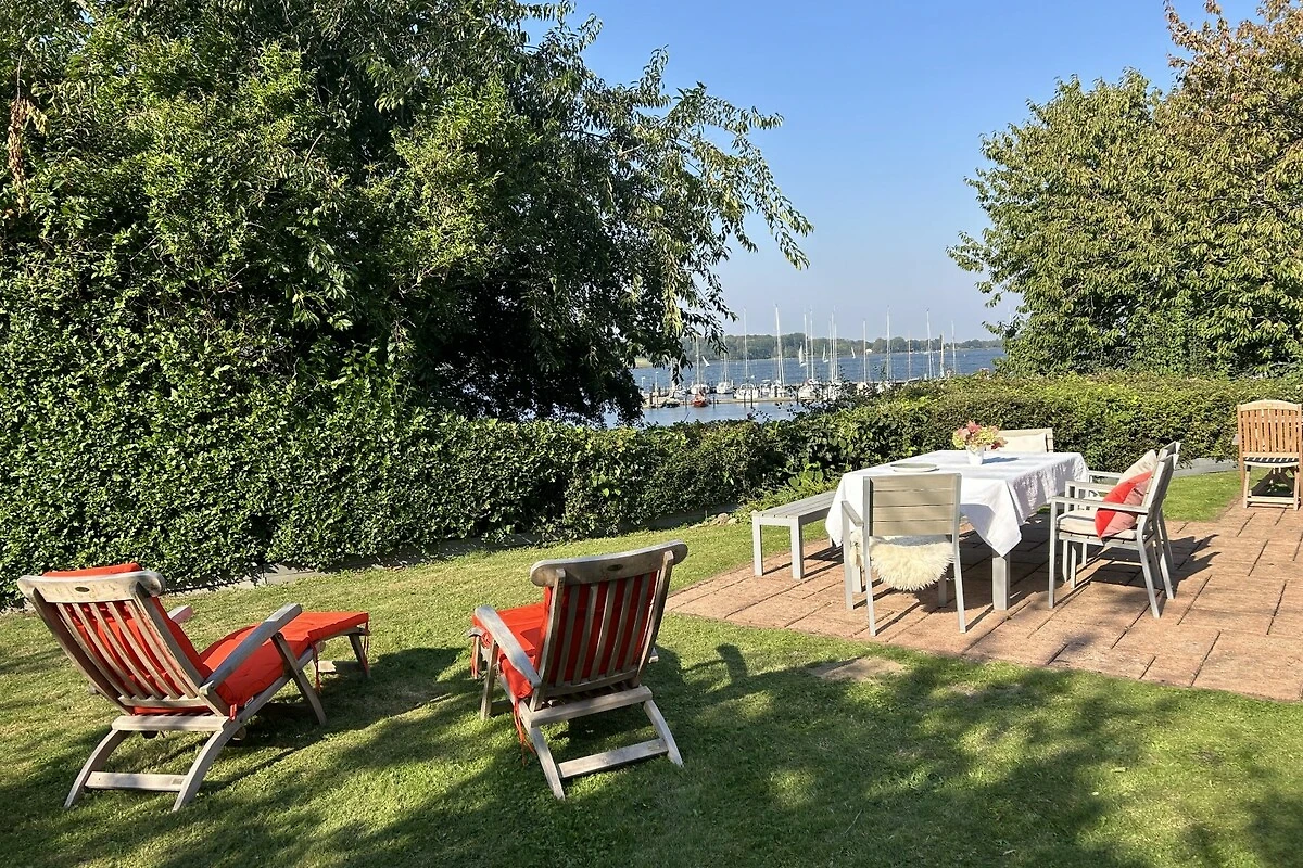 De grote woonkamer met zijn hoge plafond biedt ontspanning in zon en regen met foto's van Noord-Duitse kunstenaars, persoonlijke designerstukken, een kleine bibliotheek, een Bluetooth-geluidssysteem, een Bose-stereo-installatie en de gezellige Deense fauteuil bij de Scandinavische kachel. Aan de grote eettafel kun je urenlang de spellencollectie uitproberen, eten, kletsen en uitkijken over het water. Glasvezel- en W-Lan-toegang zijn vanzelfsprekend. De open keuken is zo goed uitgerust met servies en keukengerei dat zelfs creatieve hobbykoks kunnen koken. Alle slaapkamers bieden rust en privacy met directe toegang tot de tuin of het terras. Je kunt zelfs naar de sauna of een duik nemen in de whirlpool.
