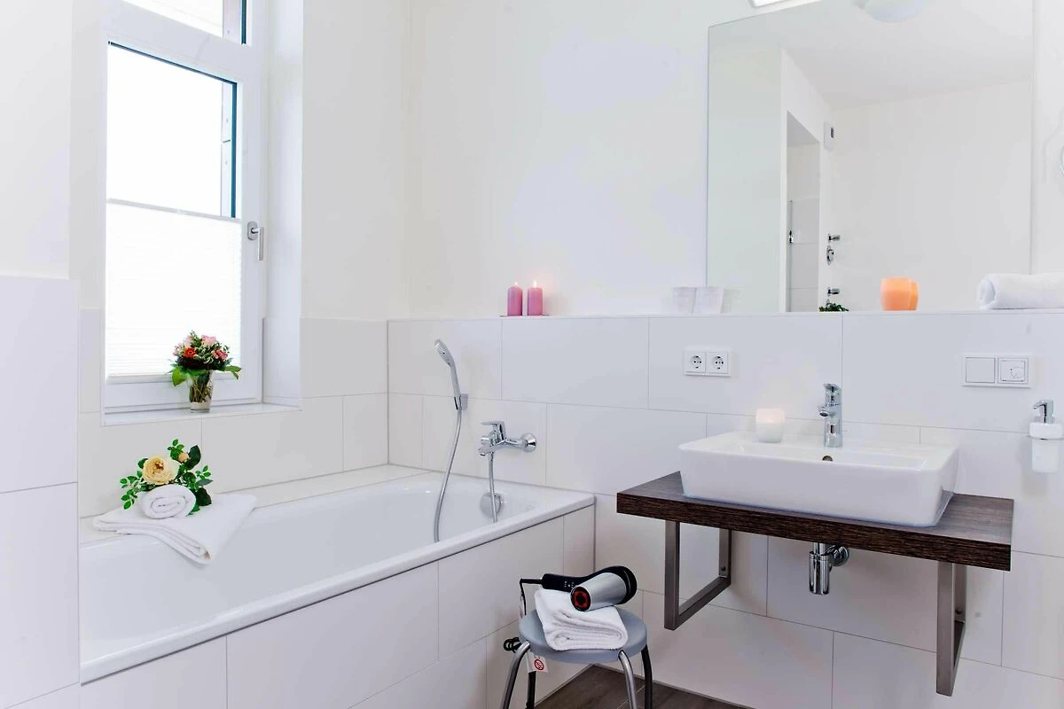Na een reis van 12 uur, (bij normale omstandigheden normaal gesproken goed 3 1/2 uur). . . door file en volledige afsluiting, . . . . . zijn we behoorlijk gefrustreerd en moe aan de Oostzeekust aangekomen. De accommodatie compenseerde ons vanaf het eerste moment voor alle inspanningen, er ontbreekt niets wat bij een weekendje weg hoort! Voordeel voor ons was ook dat we inmiddels al voor de 5e keer hier zijn en graag terugkomen! Geweldige locatie en een super totaalconcept. Van de sleutelkast tot de Tiefgarage met een parkeerplaats voor de auto.