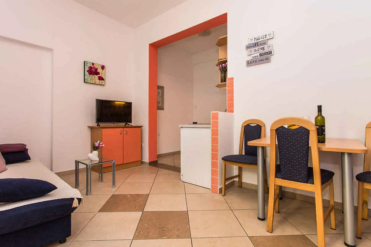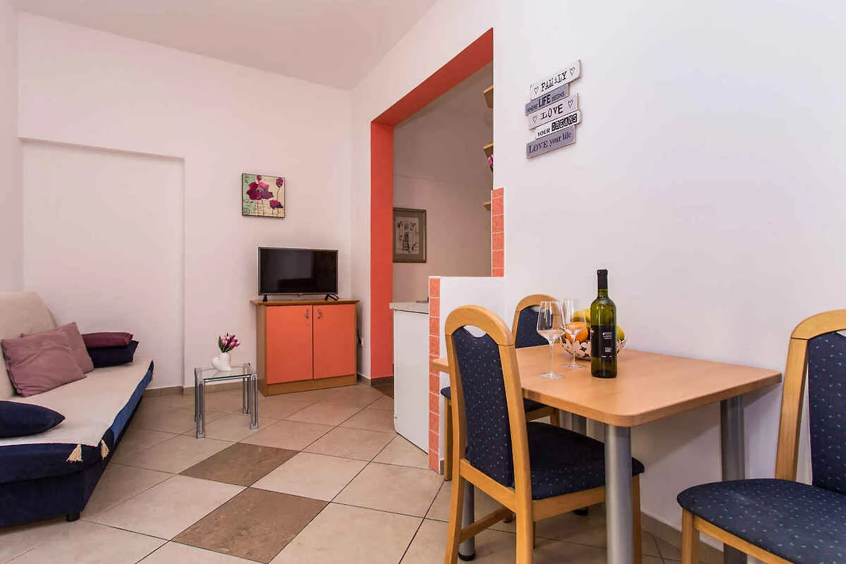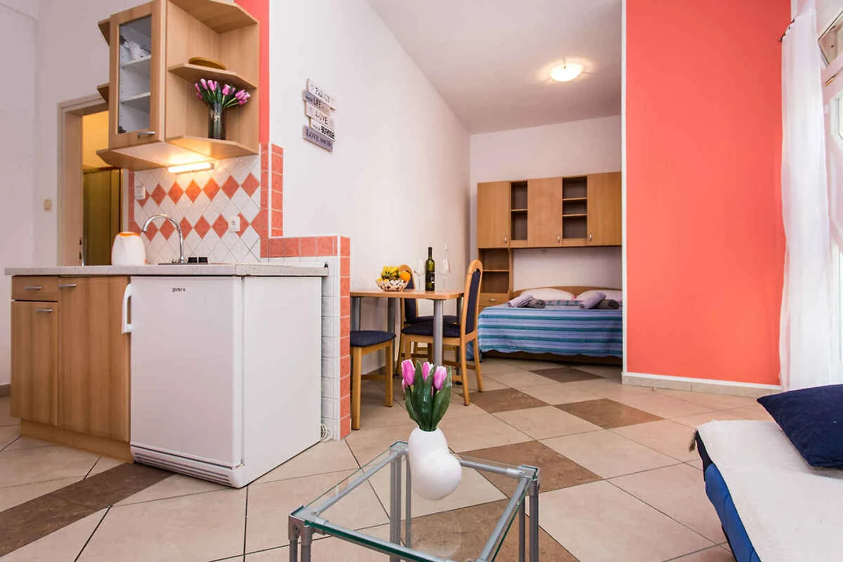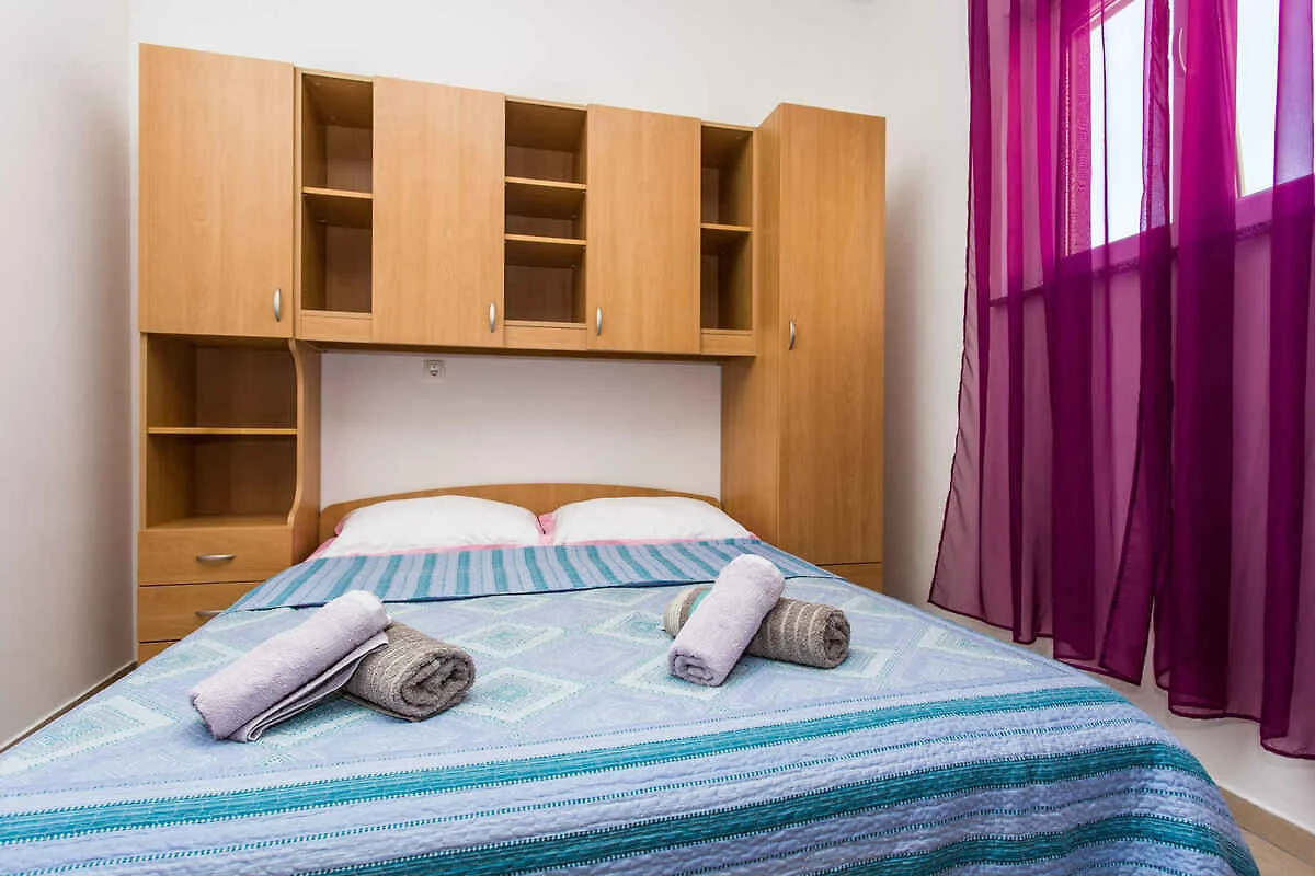 Ligging: Baška. De studio ligt in een appartementenhuis en is in lokale stijl ingericht. Het grondstuk is aan de rand van de plaats. Deze plaats is populair vanwege het ligt op een rustige plek. Uitzicht op het erf Bij het huis zijn parkeerplaatsen op het perceel beschikbaar. De dichtsbijzijnde winkels zijn op 50 m afstand, restaurant 50 m en centrum 50 m. Baska: discotheek 150 m en dokter, apotheek, bank elk 50 m. vliegveld in Rijeka 40 km.