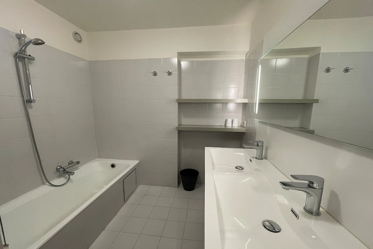 Op de 7e etage: (keuken(kookplaat(elektrisch), koffiezetapparaat, oven, magnetron, afwasmachine, koel-/vriescombinatie), woon/eetkamer(TV, eettafel, zithoek, balkon of terras), slaapkamer(stapelbed), slaapkamer(2-pers. bed(2 persoons dekbed, 160 x 200 cm)), badkamer(ligbad, wastafel), toilet(toilet))