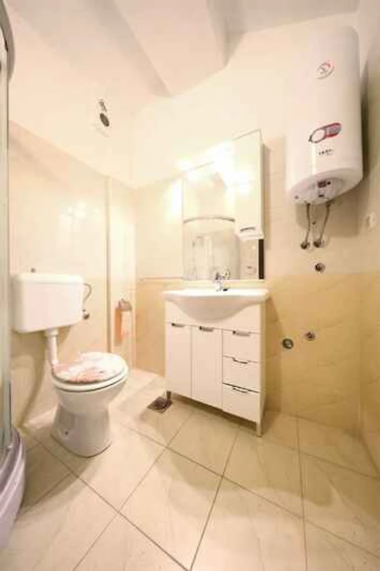 Uw vakantiewoning: Uw vakantiewoning beslaat 1 verdieping, 4 kamers (daarvan 3 slaapkamers), is 70 m² groot en is geschikt voor maximaal 6 personen. Een airconditioning zorgt op hete dagen voor een aangename temperatuur. De ingang leidt direct in de woonkamer. De indeling van de kamers is als volgt: woonkamer met zithoek, eethoek en TV. De eethoek heeft plaats voor 6 personen. U heeft toegang tot het balkon. slaapkamer 8 m² groot en met 2 éénpersoonsbedden. 2 slaapkamer elk 12 m² groot en met 1 tweepersoonsbed. kookhoek in de woonkamer met gasfornuis, bakoven, koelkast, magnetron, koffiemachine en elektrische waterkoker. 2 badkamer elk met douche en WC.