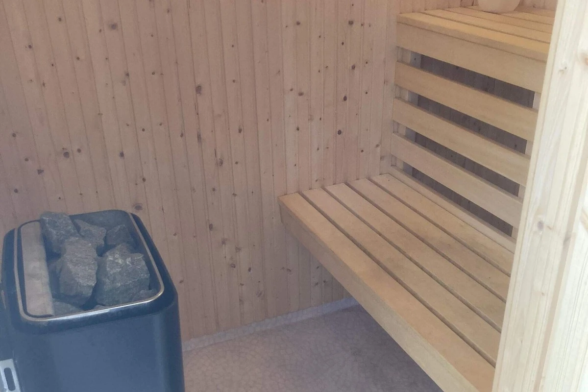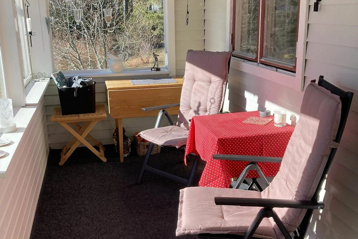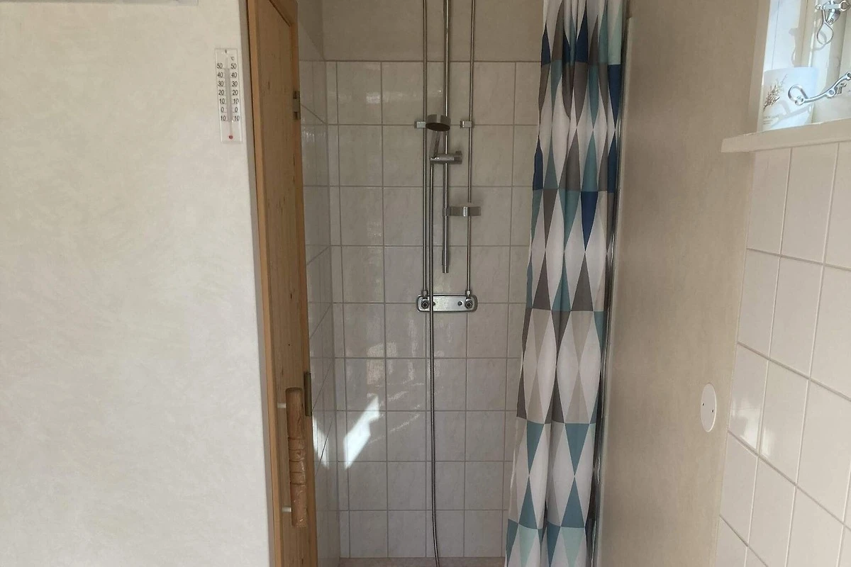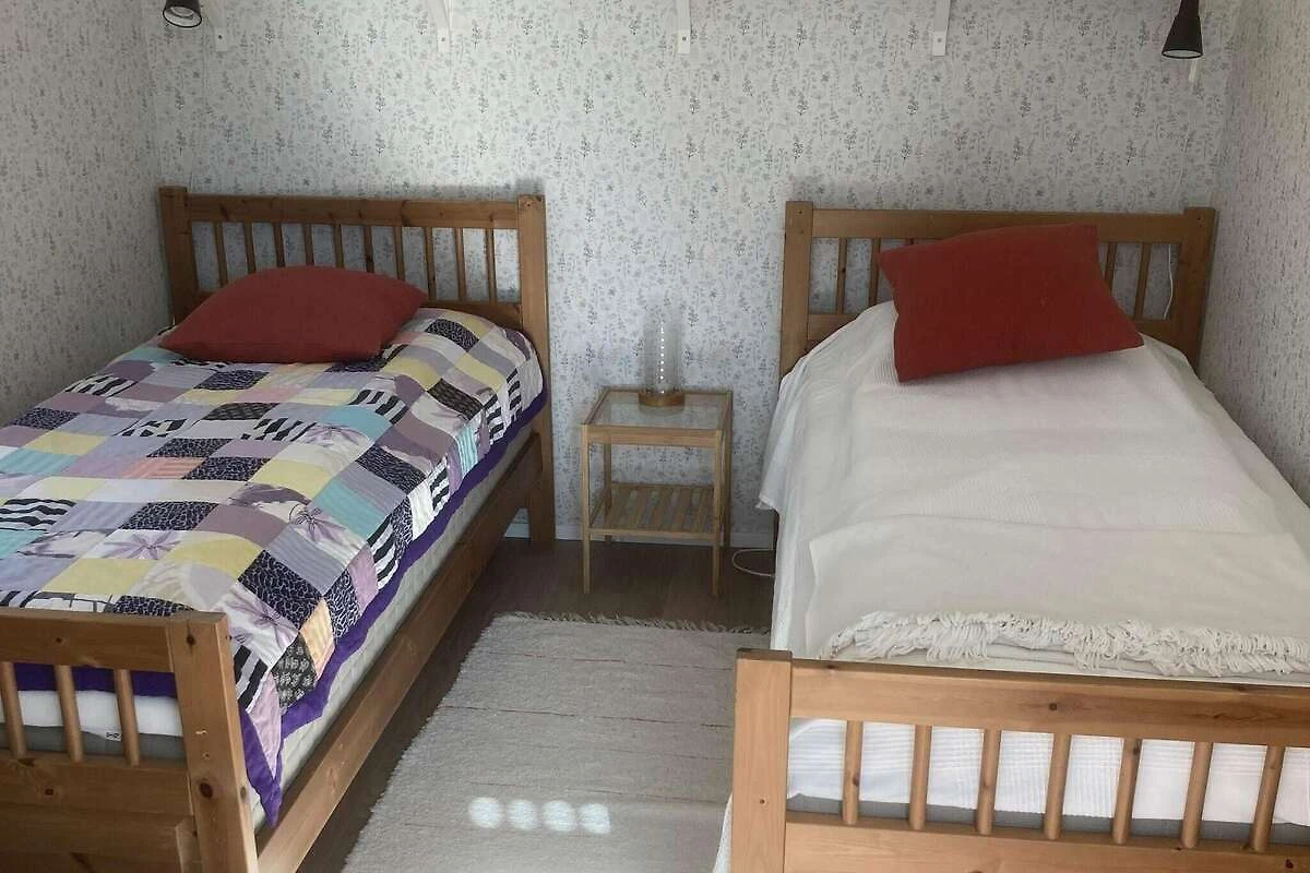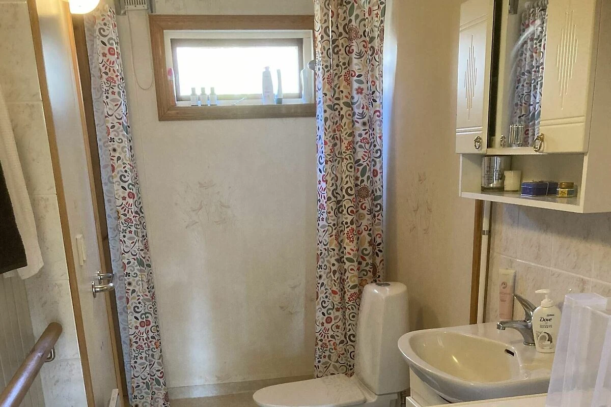keuken(fornuis(elektrisch), koffiezetapparaat, oven, afwasmachine, koel-/vriescombinatie), woon/slaapkamer(TV(zweedse TV zenders)), slaapkamer(2-pers. bed), slaapkamer(1-pers. bed), badkamer(wasbak, douche, toilet, wasmachine), badkamer(wasbak, douche(buitenom bereikbaar), toilet(buitenom bereikbaar)), serre(tuinmeubilair), sauna(buiten, 5 personen), verwarming(elektrisch), tuin, tuinmeubilair, ligbedden