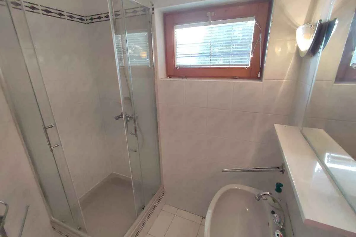 Uw vakantiewoning: Uw vakantiewoning beslaat 1 verdieping, 2 kamers (daarvan 1 slaapkamer), is 55 m² groot en is geschikt voor maximaal 3 personen. Een airconditioning zorgt op hete dagen voor een aangename temperatuur. Roken is binnen niet toegestaan. De ingang is im Erdgeschoss en leidt via de 8 m² groot terras direct in de woon/slaapkamer. De indeling van de kamers is als volgt: woon/slaapkamer met 1 extra bed op slaapbank, zithoek, eethoek en TV. De eethoek heeft plaats voor 4 personen. U heeft toegang tot het terras met tuinmeubelen, 1 tafel en 4 stoelen. slaapkamer met 1 tweepersoonsbed. kookhoek met gasfornuis (2 pitten), bakoven, koelkast (vriesvak), magnetron en koffiemachine. badkamer met douche en 1 wastafel. aparte WC met 1 wastafel en WC.