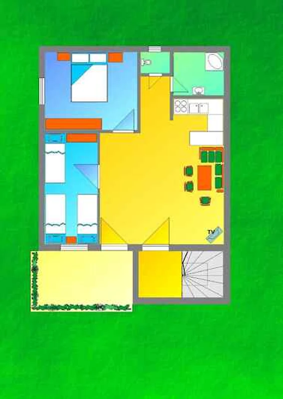 Uw vakantiewoning: Uw vakantiewoning beslaat 1 verdieping, 3 kamers (daarvan 2 slaapkamers), is 55 m² groot en is geschikt voor maximaal 5 personen. Een airconditioning zorgt op hete dagen voor een aangename temperatuur. Roken is binnen niet toegestaan. De ingang is op de zolderverdieping en leidt via een binnentrap direct in de woon/slaapkamer. De indeling van de kamers is als volgt: