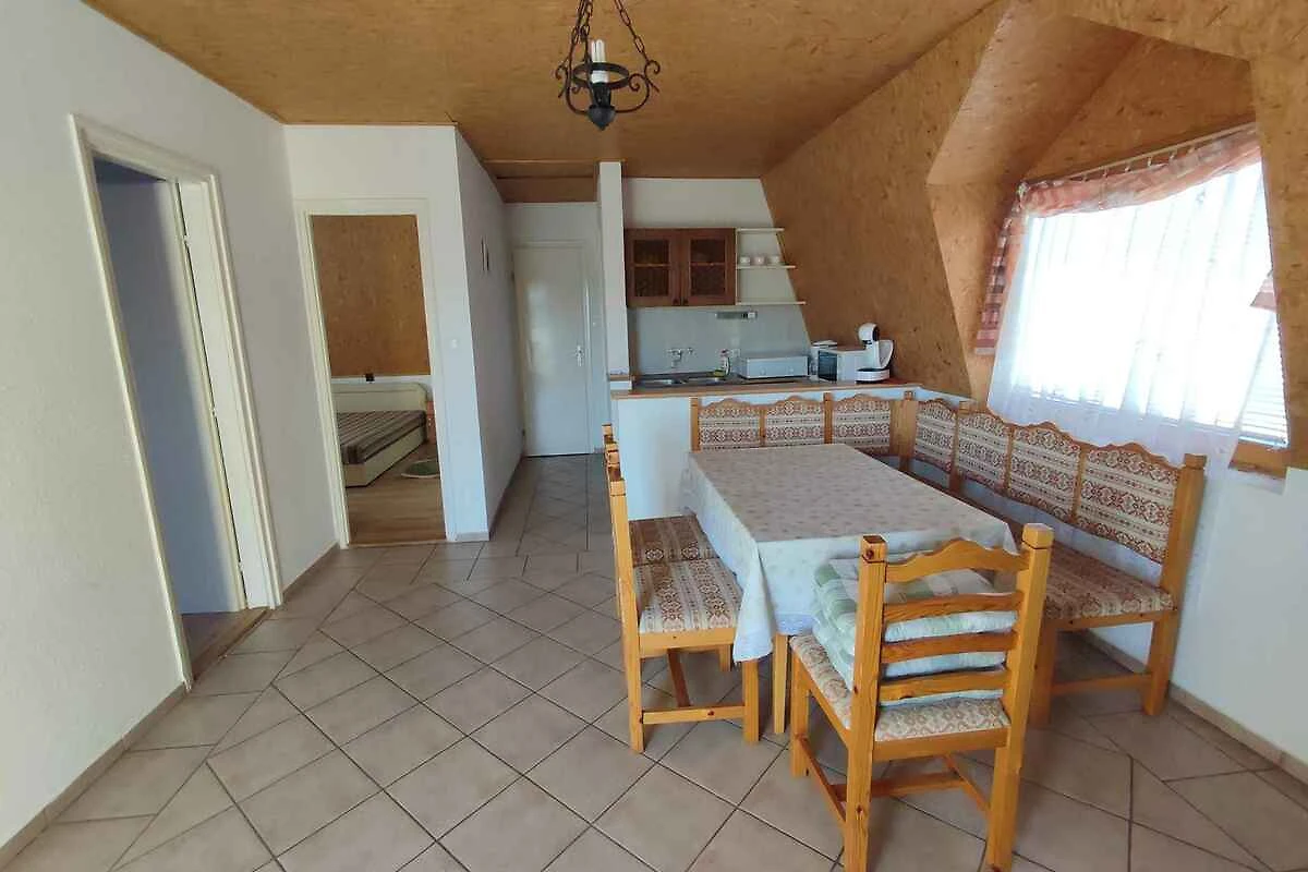 Ligging: Zamárdi. De vakantiewoning ligt in een appartementenhuis en is modern ingericht. Het grondstuk is in een drukke omgeving in een vakantiehuis-gebied. Deze plaats is populair vanwege het ligt op een zonnige plek. De toegangsweg naar het terrein gaat via een geasfalteerde zijstraat. Bij het huis is U 1 parkeerplaats voor een auto op het perceel beschikbaar. De dichtsbijzijnde winkels zijn op 100 m afstand, restaurant 150 m en centrum 150 m. Zamárdi: apotheek 200 m en station, overdekt zwembad, sauna elk 300 m. hoofdweg 350 m.