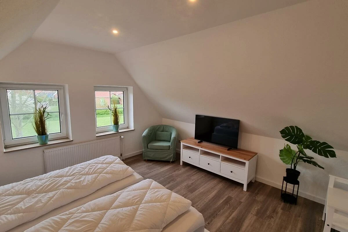 Het vakantiehuis Pfeffermuschel ligt zeer rustig en de permanent daar wonende buren zijn erg vriendelijk. Het huis is uitstekend uitgerust en gedecoreerd. Basisgew spices waren aanwezig. De terrasmöbel zijn van goede kwaliteit en zeer comfortabel. Er is een mooie sauna aanwezig, maar we hebben deze niet gebruikt. De douche op de 1e verdieping is vanwege de dakhelling minder geschikt voor grote mensen, maar er is op de begane grond een 2e badkamer met een grote douche. Vliegenhorren zijn aanwezig (zijn nodig), maar niet bij de terrasdeur en in de 2e slaapkamer. De winkel is in enkele minuten te voet te bereiken en biedt alles wat je nodig hebt.