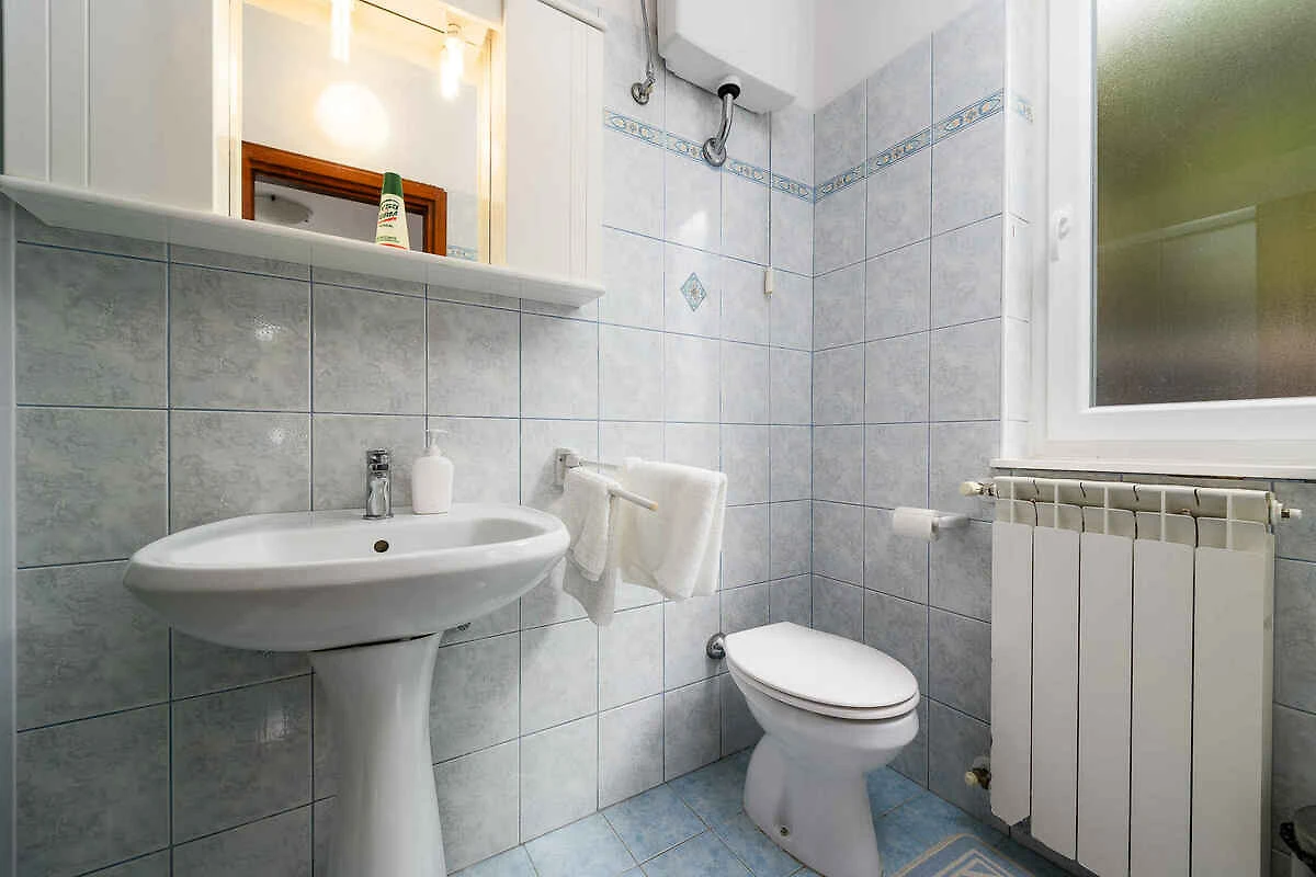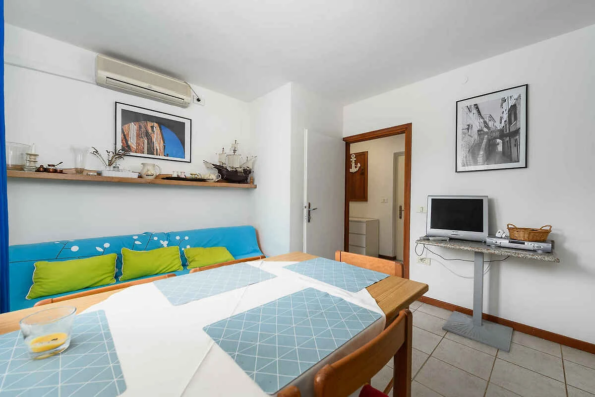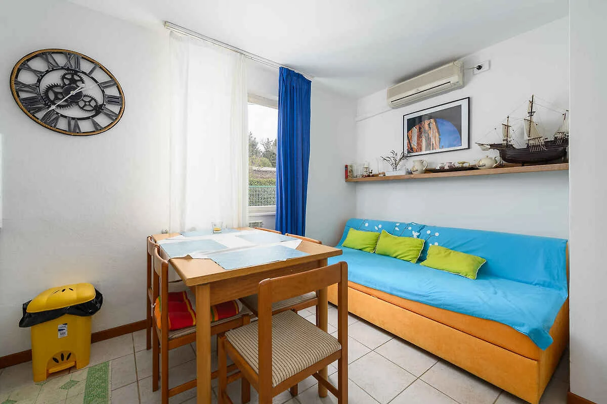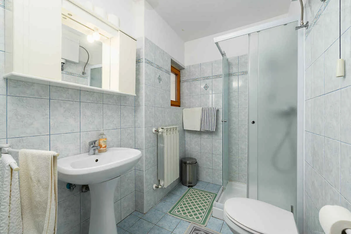 Ligging: Bašanija. De vakantiewoning ligt in een appartementenhuis en is functioneel ingericht. Het grondstuk is in een drukke omgeving. De toegangsweg naar het terrein gaat via een geasfalteerde zijstraat. De dichtsbijzijnde winkels zijn op 350 m afstand, restaurant 50 m en centrum 7,5 km. dokter in Katoro 4 km. Zambratija: apotheek 2 km en bank 600 m.