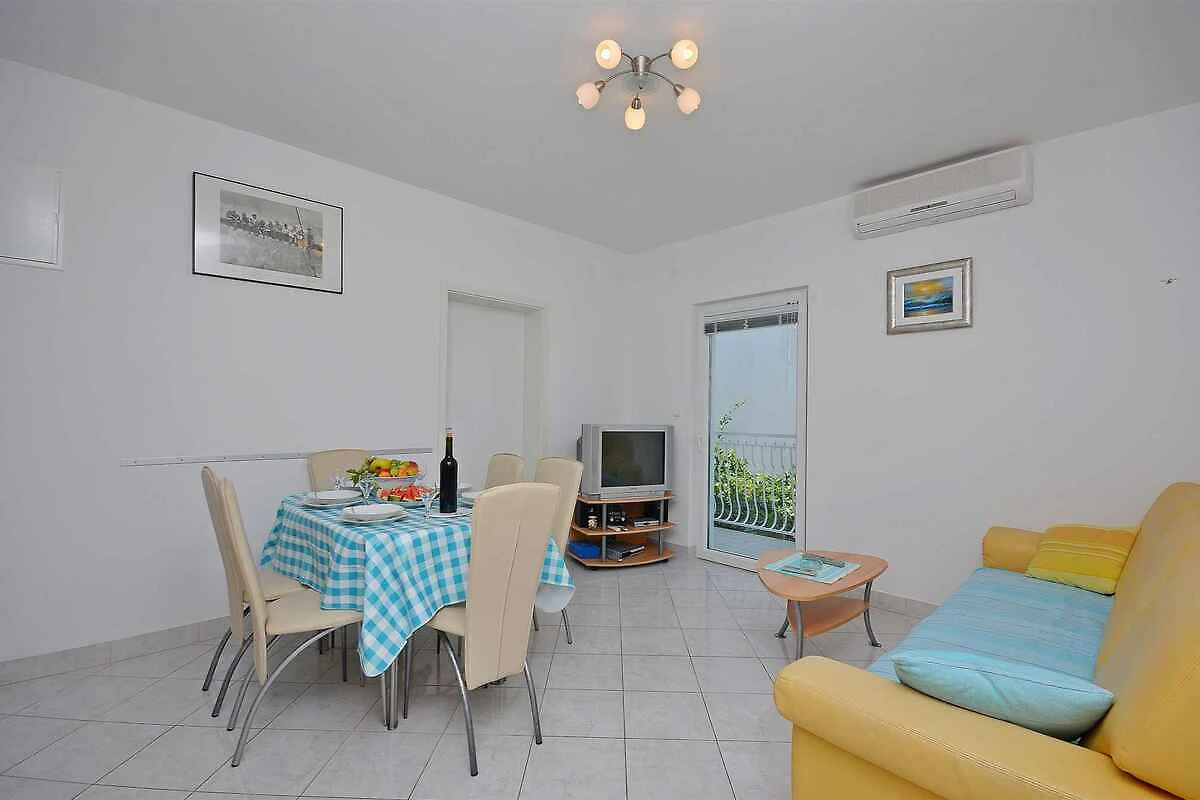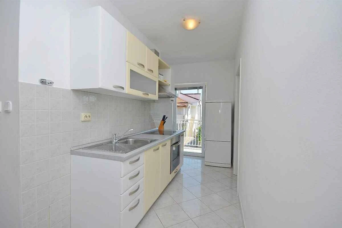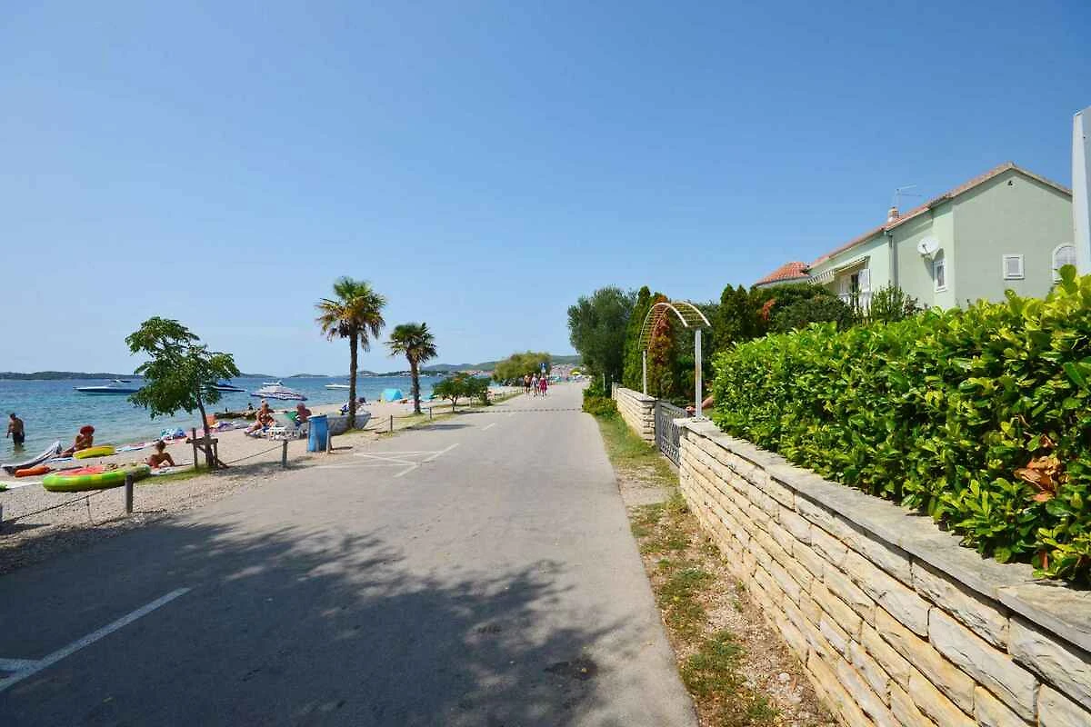 Ligging: Srima. De vakantiewoning ligt in een appartementenhuis en is in lokale stijl ingericht. Het grondstuk is aan de rand van de plaats. Deze plaats is populair vanwege het ligt op een zonnige plek. De toegangsweg naar het terrein gaat via een zijstraat. Bij het huis zijn parkeerplaatsen op het perceel beschikbaar. De dichtsbijzijnde winkels zijn op 40 m afstand, restaurant 70 m en centrum 400 m. dokter, apotheek elk 2 km in Vodice. vliegveld in Zadar 65 km.