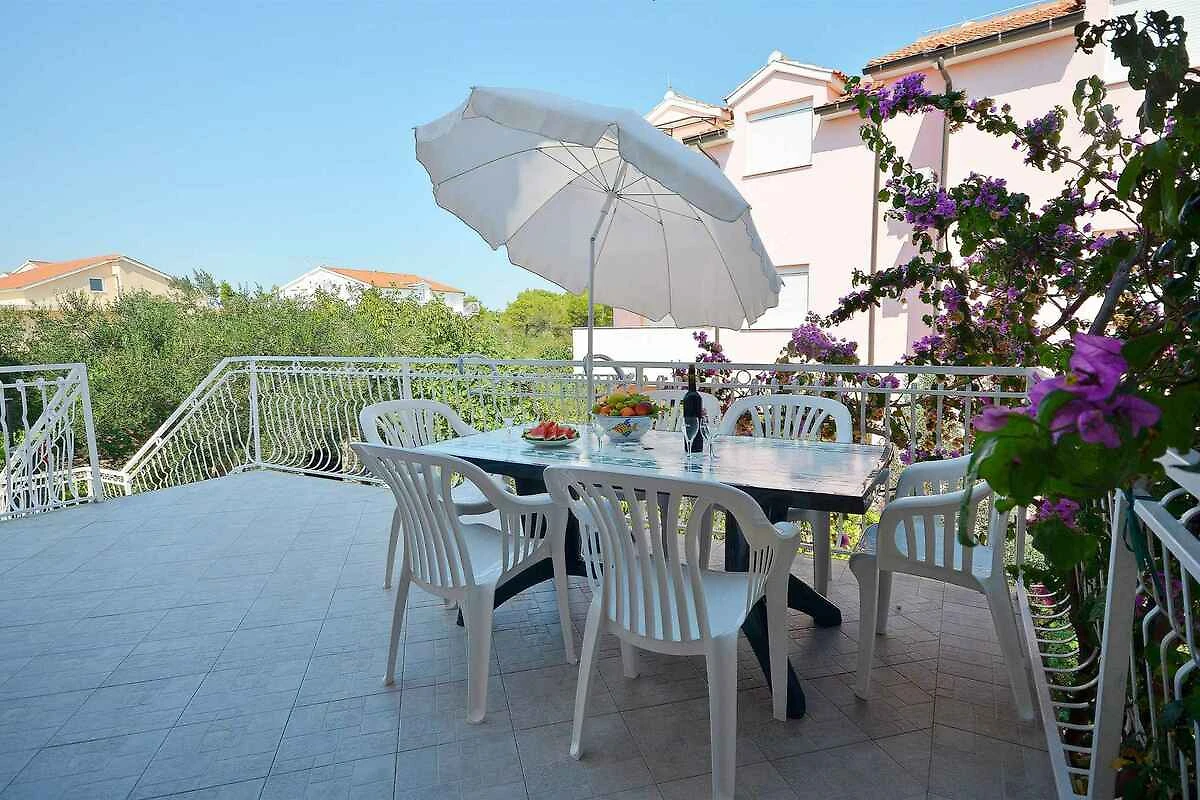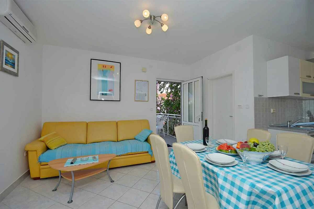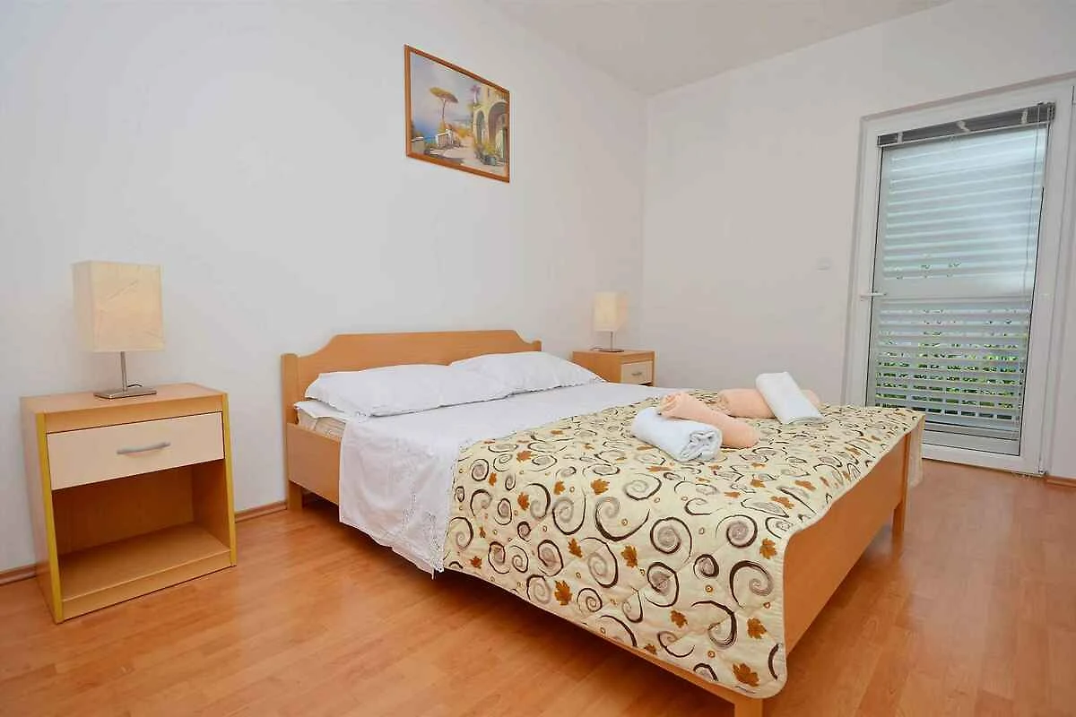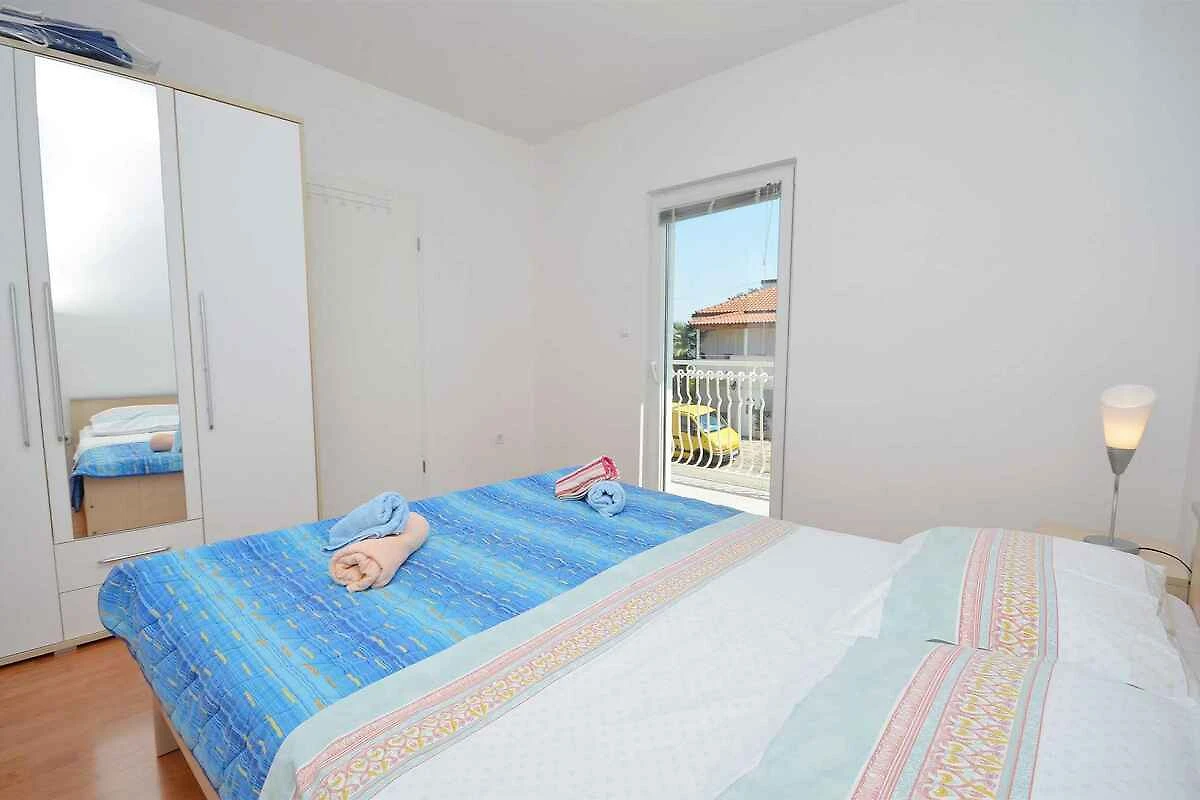 Ligging: Srima. De vakantiewoning ligt in een appartementenhuis en is in lokale stijl ingericht. Het grondstuk is aan de rand van de plaats. Deze plaats is populair vanwege het ligt op een zonnige plek. De toegangsweg naar het terrein gaat via een zijstraat. Bij het huis zijn parkeerplaatsen op het perceel beschikbaar. De dichtsbijzijnde winkels zijn op 40 m afstand, restaurant 70 m en centrum 400 m. dokter, apotheek elk 2 km in Vodice. vliegveld in Zadar 65 km.