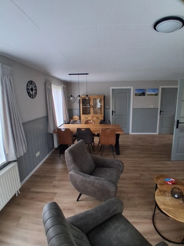 Binnen vindt u alle comfort van thuis. De keuken is uitgerust met een vaatwasser, magnetron, waterkoker en koffiezetapparaat, zodat u gemakkelijk uw eigen maaltijden kunt bereiden. De gezellige woonkamer nodigt uit tot ontspannen avonden voor de televisie. En met de aanwezige wasmachine hoeft u zich geen zorgen te maken over vuile kleding.