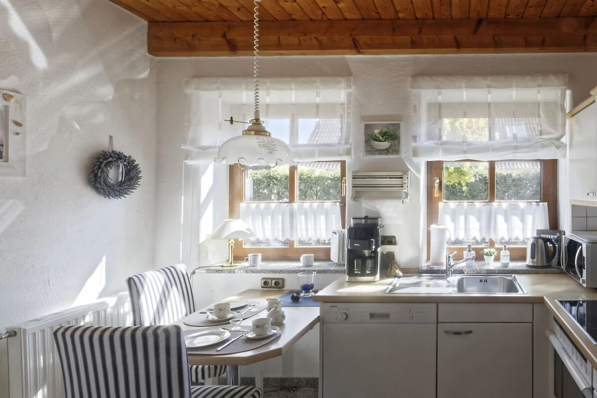 Comfortabel verblijf met een volledig uitgeruste keuken. Genoten van onze avonden bij de open haard na het verkennen van het nationale park Niedersaechsisches Wattenmeer