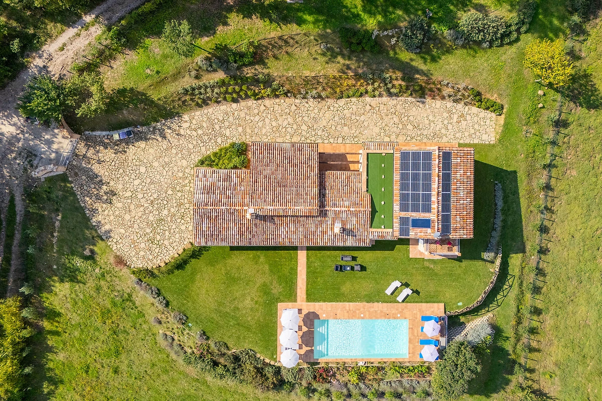 Het grote gazon biedt royale ruimte voor buitenactiviteiten en ontspanningsmomenten. De bloembedden en terrassen, struiken en olijfbomen rondom het pand voegen een vleugje kleur en geur toe, waardoor een betoverende en regenererende sfeer ontstaat.