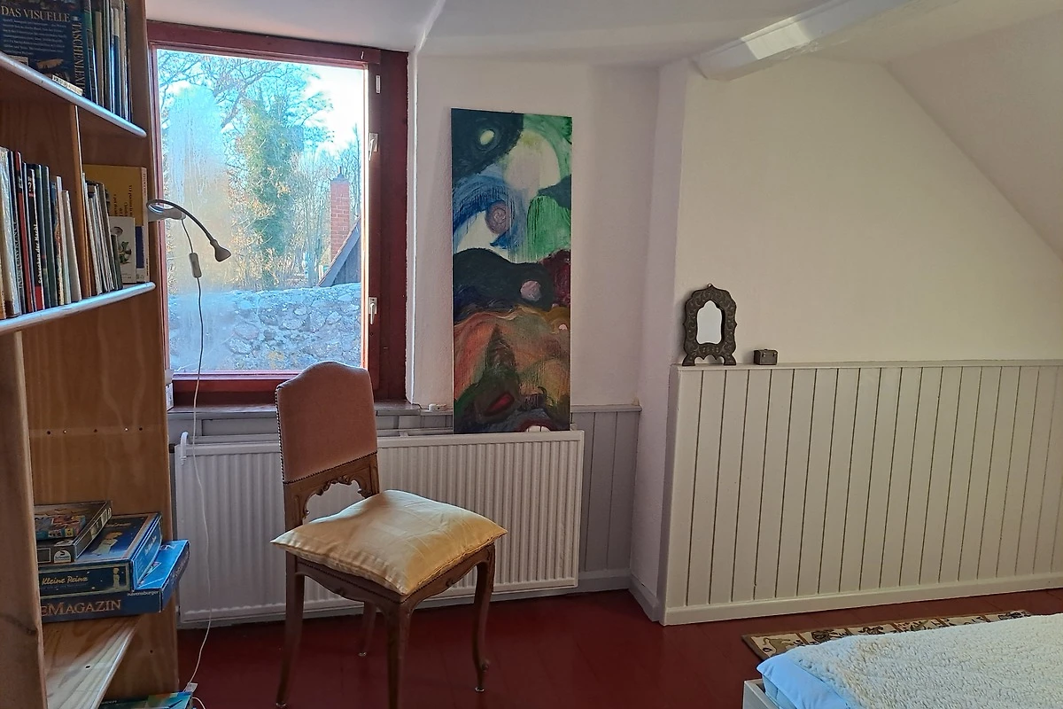 Het huis is een rookvrij huis, roken is uiteraard toegestaan op het balkon en in de tuin. Het huis heeft houten vloeren. De meubels zijn individueel en gezellig. Er hangen kunstwerken aan de muren en er zijn boekenplanken met boeken. De balkonkamer ligt op het zuiden.