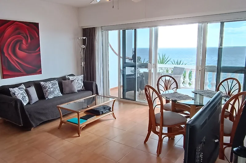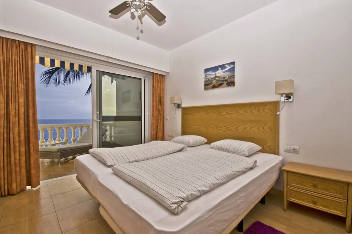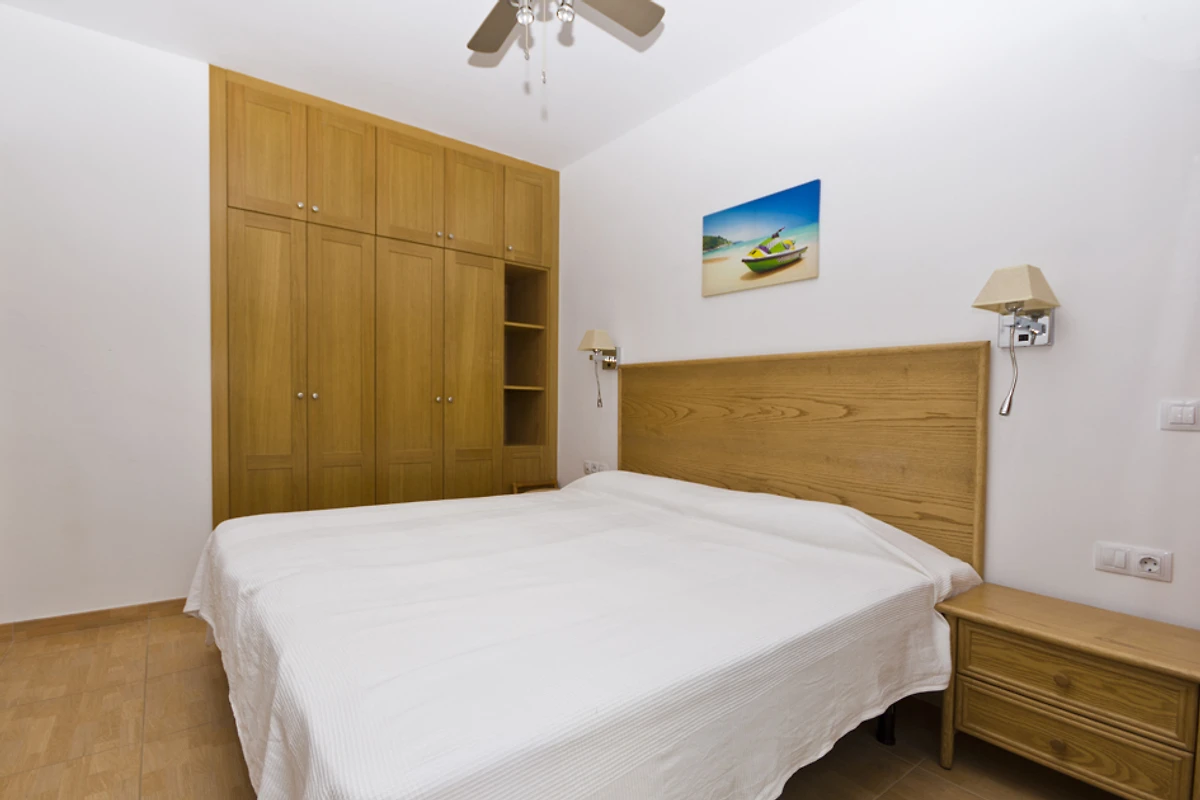 Het appartement beschikt over een slaapkamer met zeezicht en een andere slaapkamer met uitzicht op de binnenplaats.