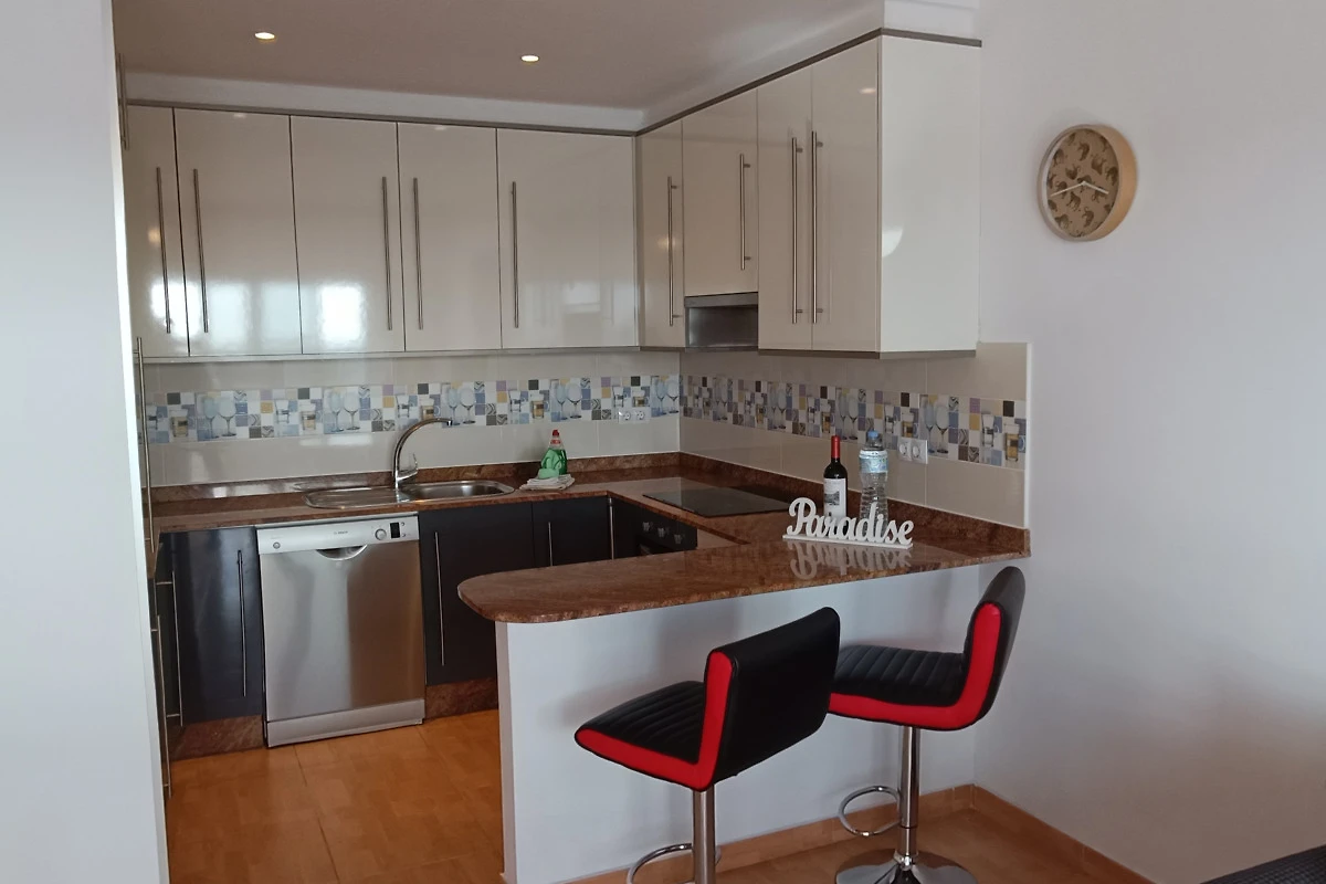 Vakantieappartement met alle voordelen. De keuken is in Amerikaanse stijl ingericht, met een bar voor ontbijt / voorbereidingsruimte. In deze keuken kunt u zelf de beste maaltijden bereiden. Nieuwe oven 2024, magnetron 2024, sinaasappelpers, koffiezetapparaat en meer.