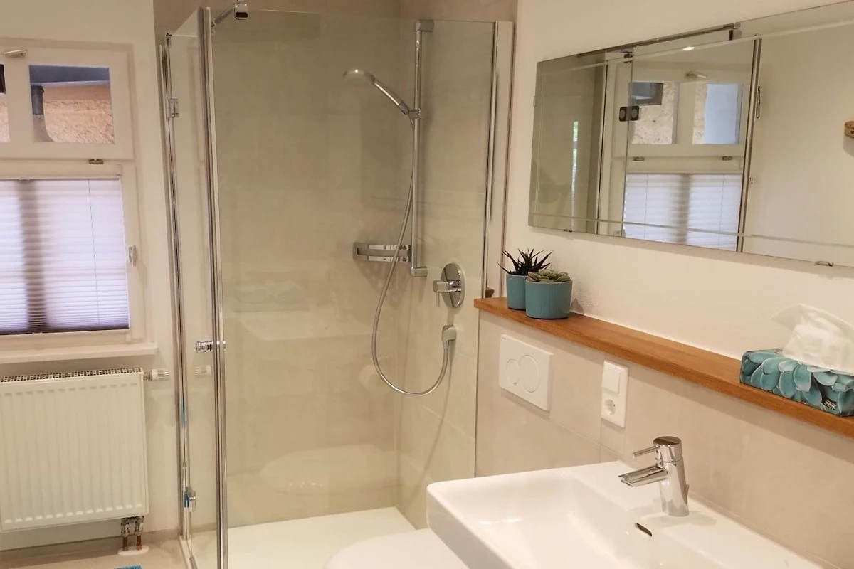 De gedeelde keuken was goed uitgerust, waardoor het gemakkelijk was om maaltijden te bereiden. We hebben genoten van het verkennen van de nabijgelegen Rosenobel Gärten, prachtige tuinen voor een romantische wandeling.