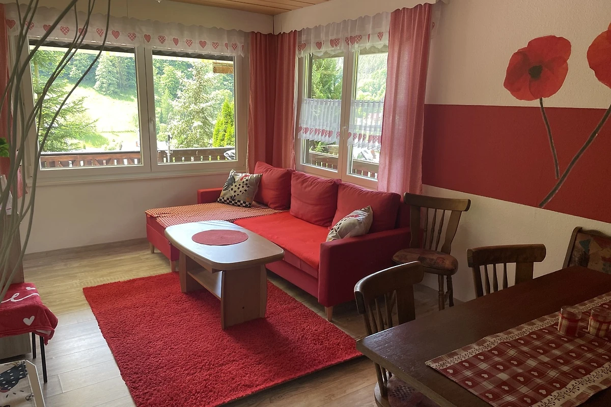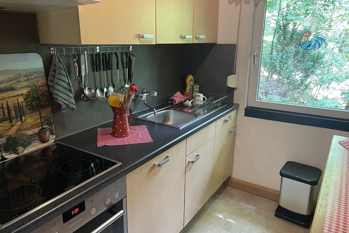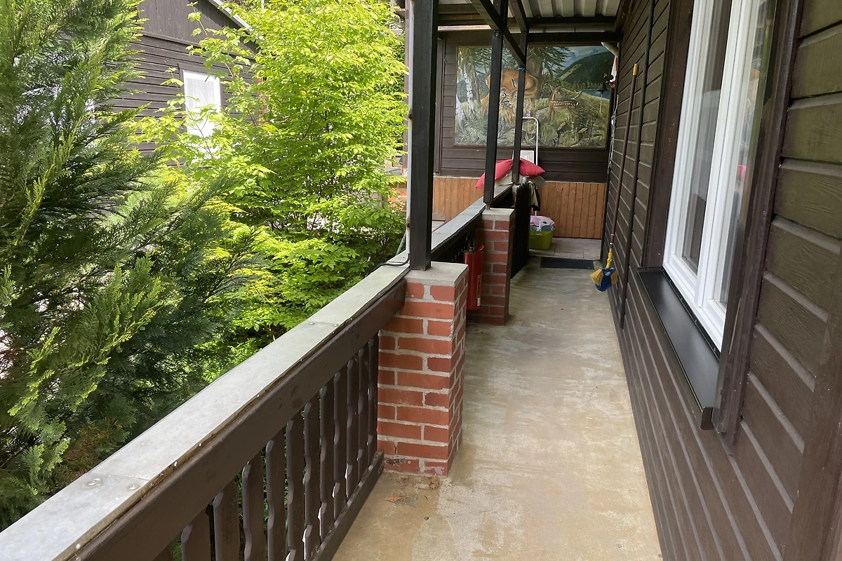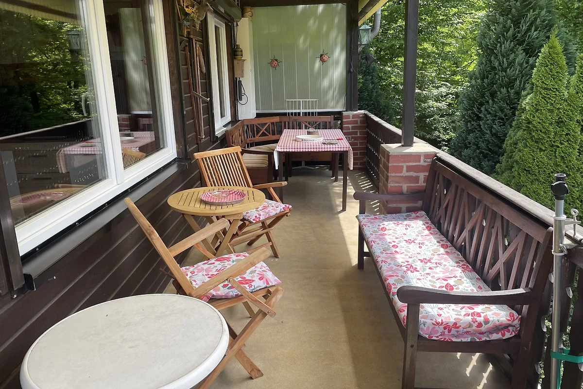 Ons vakantiehuis staat niet midden in het bos, maar aan de rand van het bos met een prachtig uitzicht op ons dorp. Omdat het op een zuidhelling ligt, heb je tot in de avonduren zon. Je kunt het terras gebruiken om te ontspannen, zonnebaden, barbecuen, eten, koffie drinken of gewoon om naar buiten te kijken.