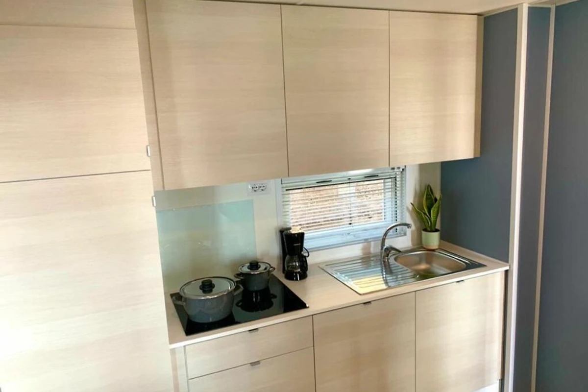 Prachtige mobilhome met een adembenemend uitzicht op het meer en natuurlijk is de privé jacuzzi in de tuin geweldig waar je je kunt ontspannen.