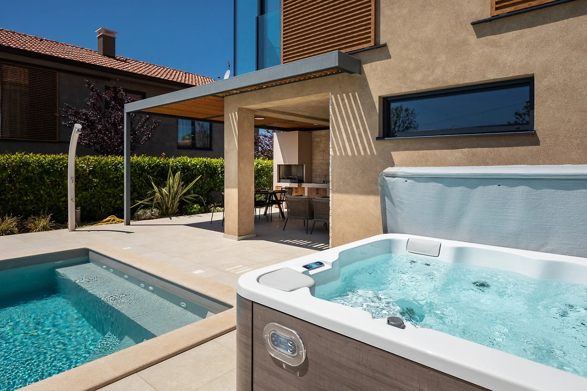 Tevens heeft u de beschikking over tuin, tuinmeubilair, omheind perceel, terras, wasmachine, barbecue, openhaard, strijkijzer, internet (wifi), haardroger, sauna, jacuzzi, spa, warmtepomp, airconditioning, verwarmd zwembad privé, openlucht parkeerplaats in in het zelfde gebouw, Televisie, satelliet tv.