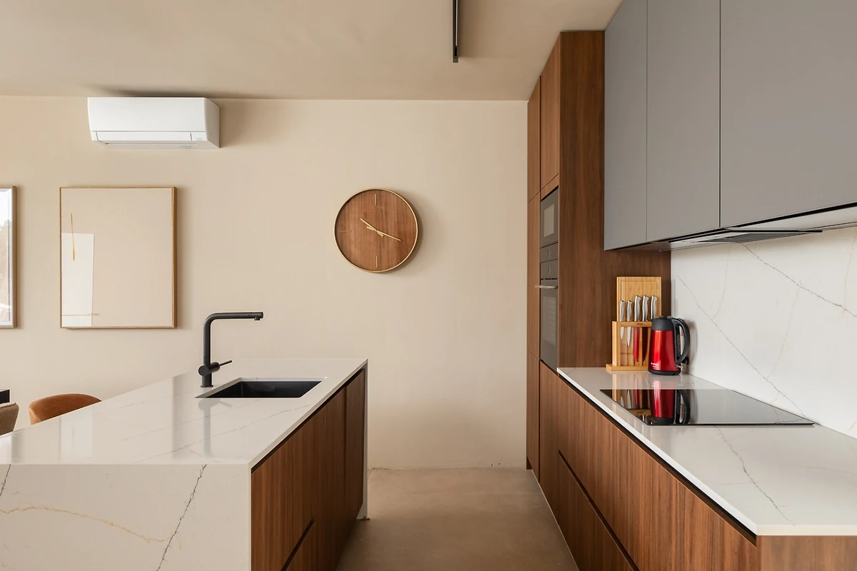 De open keuken, is uitgerust met koelkast, magnetron, oven, vriezer, vaatwasmachine, servies/bestek, keukengerei, koffiezetapparaat, broodrooster en waterkoker.